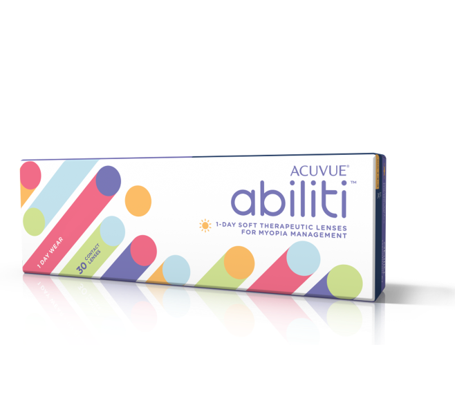2 Data on File 2024. Efficacy of ACUVUE® Abiliti™ 1-Day Soft Therapeutic Lenses for Myopia Management: Comparative Claims vs. Single Vision and Dual Focus Lenses.