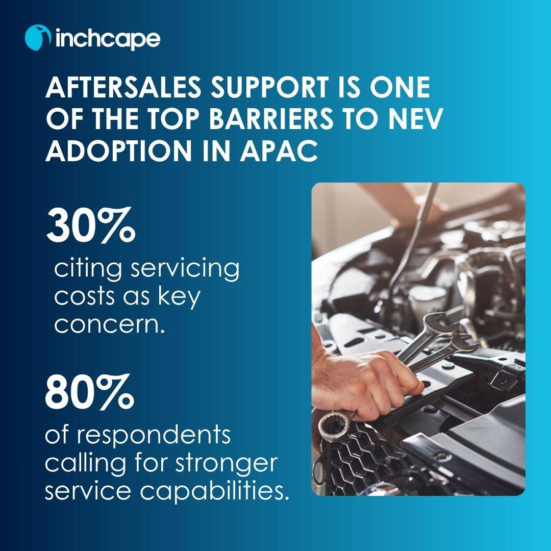 報告同時點出亞太區新能源車普及的關鍵挑戰:80%受訪者認為售後服務能力待加強,30%擔憂維修成本。為此,英之傑推出旗艦電動車售後平台Inchcape One+,整合公共充電、企業充電方案及家用充電器安裝,並成為全港首間獲機電工程署認證全線維修中心具高壓電維修資格的企業。目前近七成售後團隊已完成高壓電池系統專業培訓。