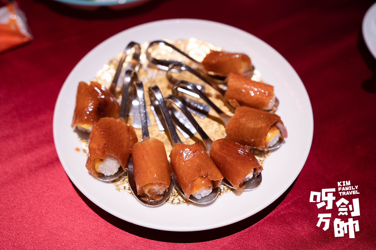 另外一款就以特製蒽油餅方法製作,這個充滿肉汁的鴨肉,捲入酥脆蔥餅餅食口感極佳。