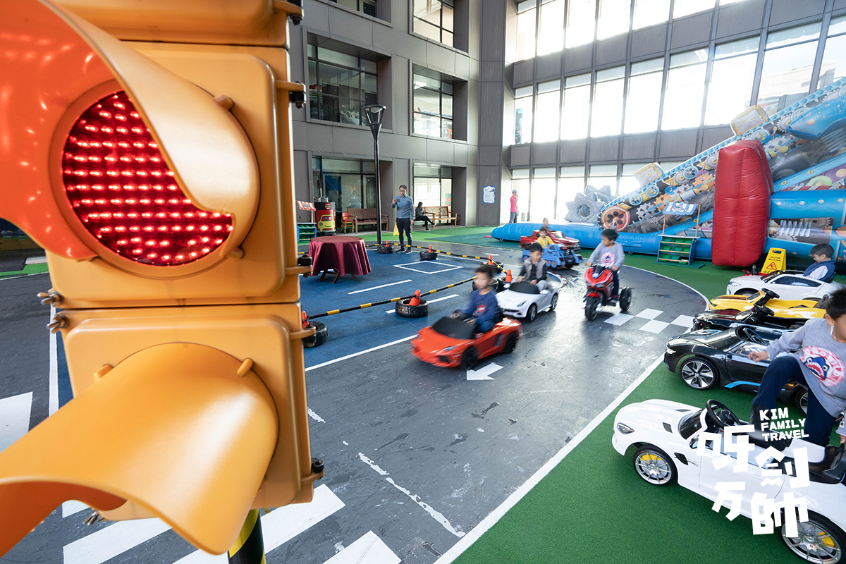 最可惜的是天公不造美,因為下雨天外面的露天廣場就要關閉,所以小朋友就只可以在環繞道內駕駛。(不過看來只是大人失望…小朋友同樣玩得爽!)