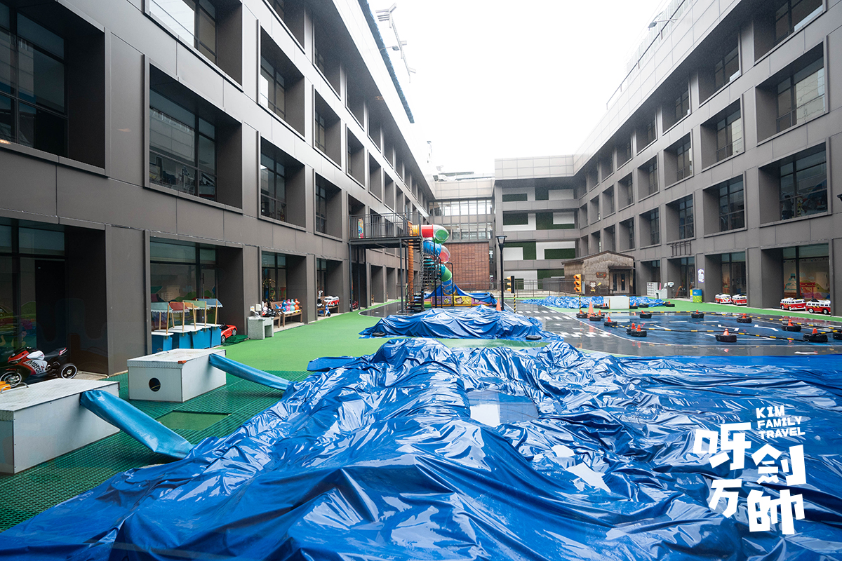 到第二天天氣慢慢好轉,戶外廣場終於重開,小孩都可以開着車子出去玩玩了。