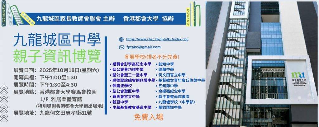 中一入學2026|在教育改革的浪潮中,升中選擇已成為影響學生學業發展的關鍵節點。為幫助家長與學生在多元教育環境中做出最適選擇,九龍城區家長教師會聯會將於2025年10月18日,在香港都會大學賽馬會校園雅居樂體育館隆重舉辦「2025年度九龍城區中學親子資訊博覽」。這場年度教育盛事不僅是資訊交流的平台,更是連結學校、家庭與學生的重要橋樑,為教育選擇提供全面而專業的參考依據。