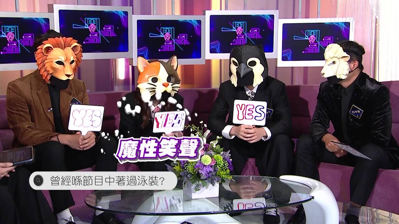 全晚高潮所在,必定是主持Edmond追問四位藝人的感情狀況!當問到他們的另一半或緋聞對象是否圈中人時,「獅子王」與「貓女郎」竟同時陷入Hang機狀態,面面相覷,完全不懂反應,場面極度尷尬。眼見二人陷入膠著,Edmond更乘勝追擊,直接指出「獅子王」疑似緋聞多多,令「獅子王」瞬間進入「靜止畫面」,呆若木雞的反應相當爆笑!這段超尷尬互動,令網民猜測二人關係非比尋常,甚至可能是一對緋聞情侶,身份之謎更添懸念。
