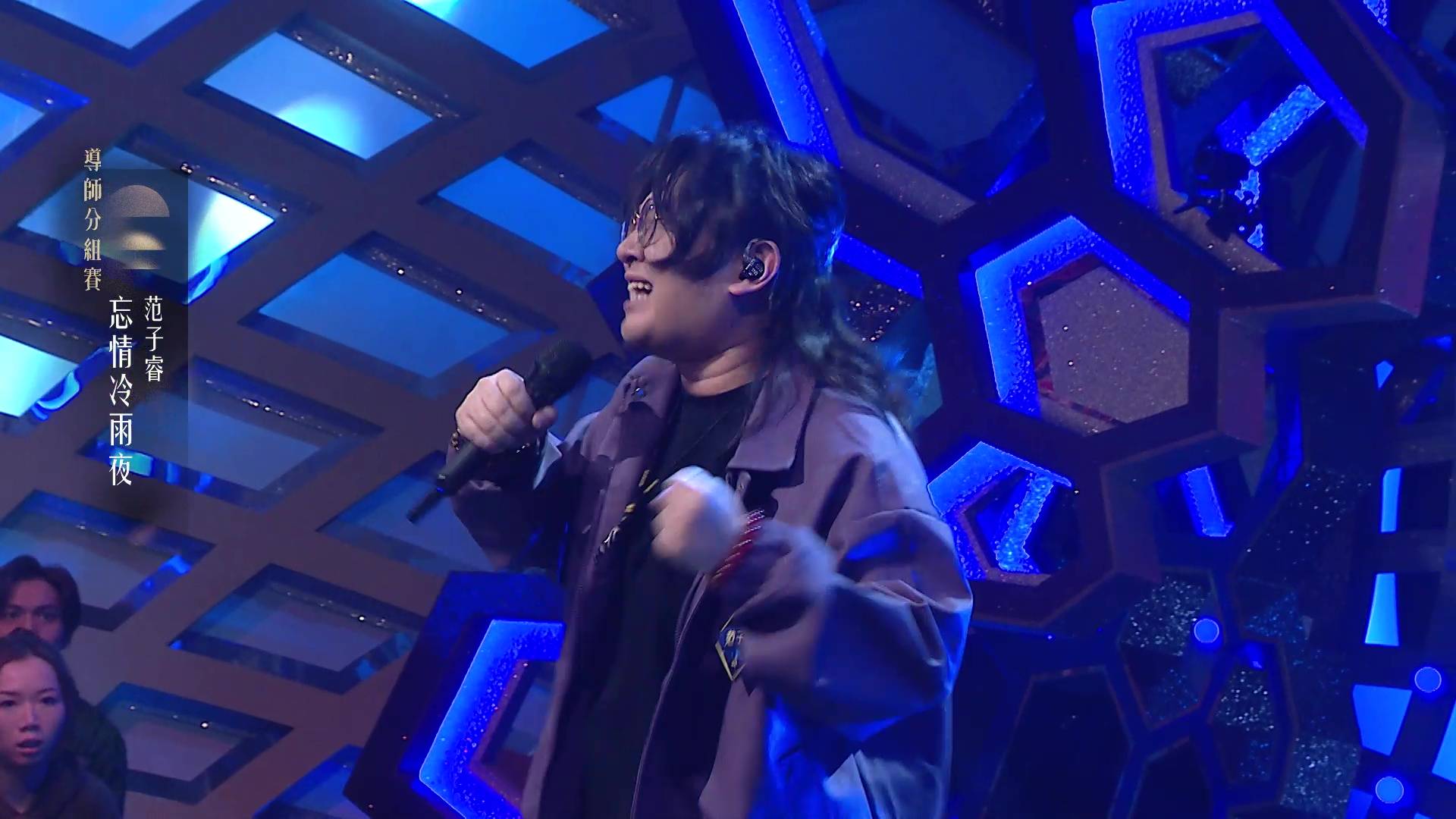被封為「中 4 頭號殺手」的范子睿,今次比賽完全豁出去,特意梳上凌亂髮型,務求做到「人歌合一」,帶出被女友拋棄的感覺。他在台上全程握實拳頭,加上誇張的肢體動作,完美演繹《忘情冷雨夜》的崩潰情緒。范子睿賽後透露,自己之前從未唱過此曲,在短短十天內不停苦練,更在比賽前一日的綵排中辛苦到想嘔,甚至在舞台上跪了兩次,可見他為演出投入了極大心力,他笑言:「啲同伴話『你今日都跪啦』,我話算啦,會嚇親人。」