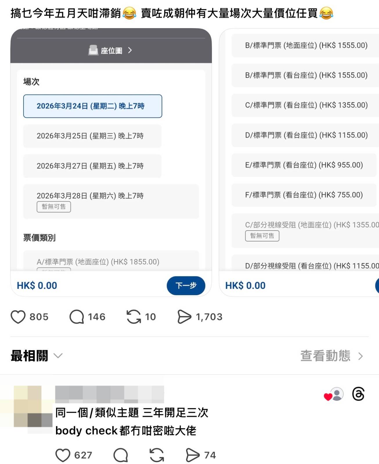 2.票價貴到離晒大譜粉絲大呻負擔不起