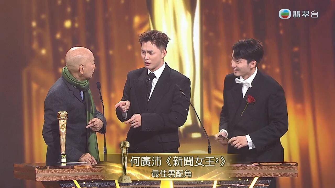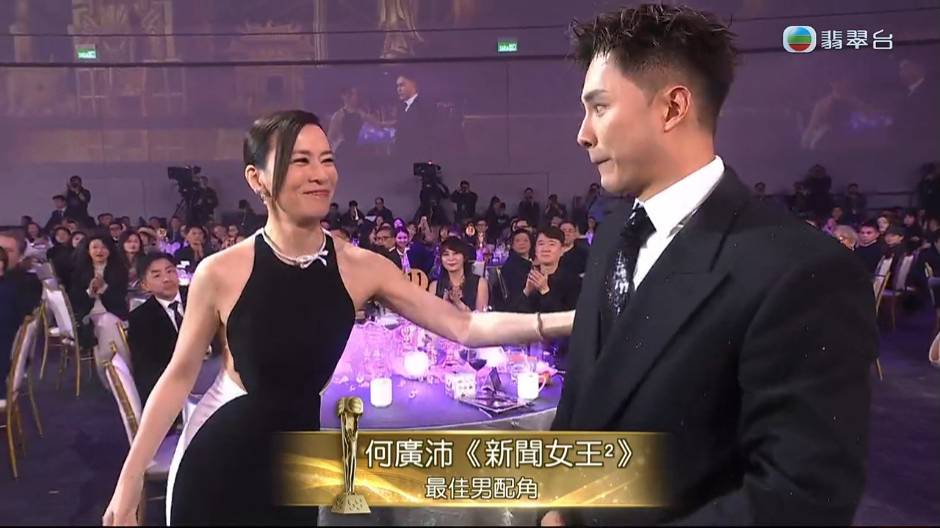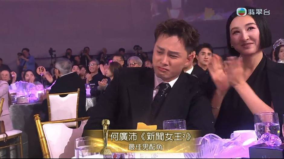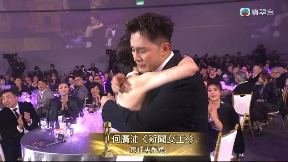 何廣沛在台上接過獎座時明顯情緒激動,一度哽咽表示「我唔記得曬講咩,我攞飛躍之後我知道我應該冇咁快再攞到」。這位即將踏入四字頭的實力派演員,能夠在事業高峰期再下一城確實令人感動。他特別感謝佘詩曼的提攜和支持,更不忘感謝另一半的默默支持,真摯的感言讓現場氣氛相當溫馨。台下的佘詩曼聽到何廣沛的感謝後,立即起身給予溫暖擁抱,自己也激動得眼泛淚光,充分展現出前輩對後輩的關愛之情。