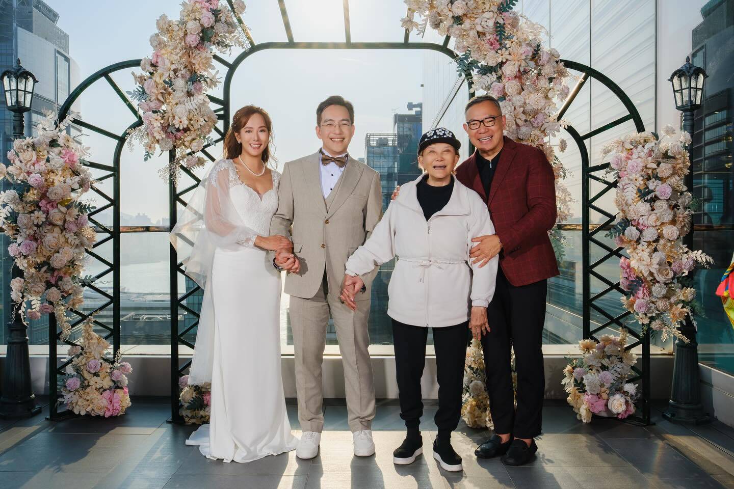 吳幸美的婚禮在一個能俯瞰城市景色的戶外天台舉行,現場佈置以粉色和白色系鮮花為主,打造出既浪漫又典雅的花拱門。在陽光與親友見證下,一對新人交換戒指、簽署結婚證書,並一同切結婚蛋糕。吳幸美身穿純白貼身婚紗,長袖採用精緻蕾絲透膚設計,配上簡約珍珠項鍊和飄逸長頭紗,整體造型高貴優雅,盡顯新娘子的幸福美麗。新郎Sammy則穿上淺色西裝配搭煲呔,顯得十分帥氣。