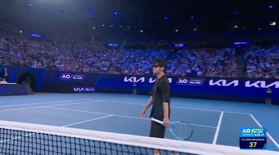 「一分大滿貫」是本屆澳網全新推出的表演賽,規則極其簡單粗暴——兩位選手只打一分,勝者晉級,敗者出局,總獎金高達100萬美元。周杰倫在首輪抽籤對上24歲的澳洲業餘球手佩塔爾·祖域(Petar Jovic),這位年輕球員曾擔任多位知名職業球星的陪練員,實力不容小覷。比賽開始前,雙方需要以「包剪揼」決定發球權,結果周杰倫運氣稍遜,由對手祖域贏得發球機會。諷刺的是,周董賽前曾幽默表示「希望能贏得發球權,不然可能連球都碰不到」,結果真的一語成讖。