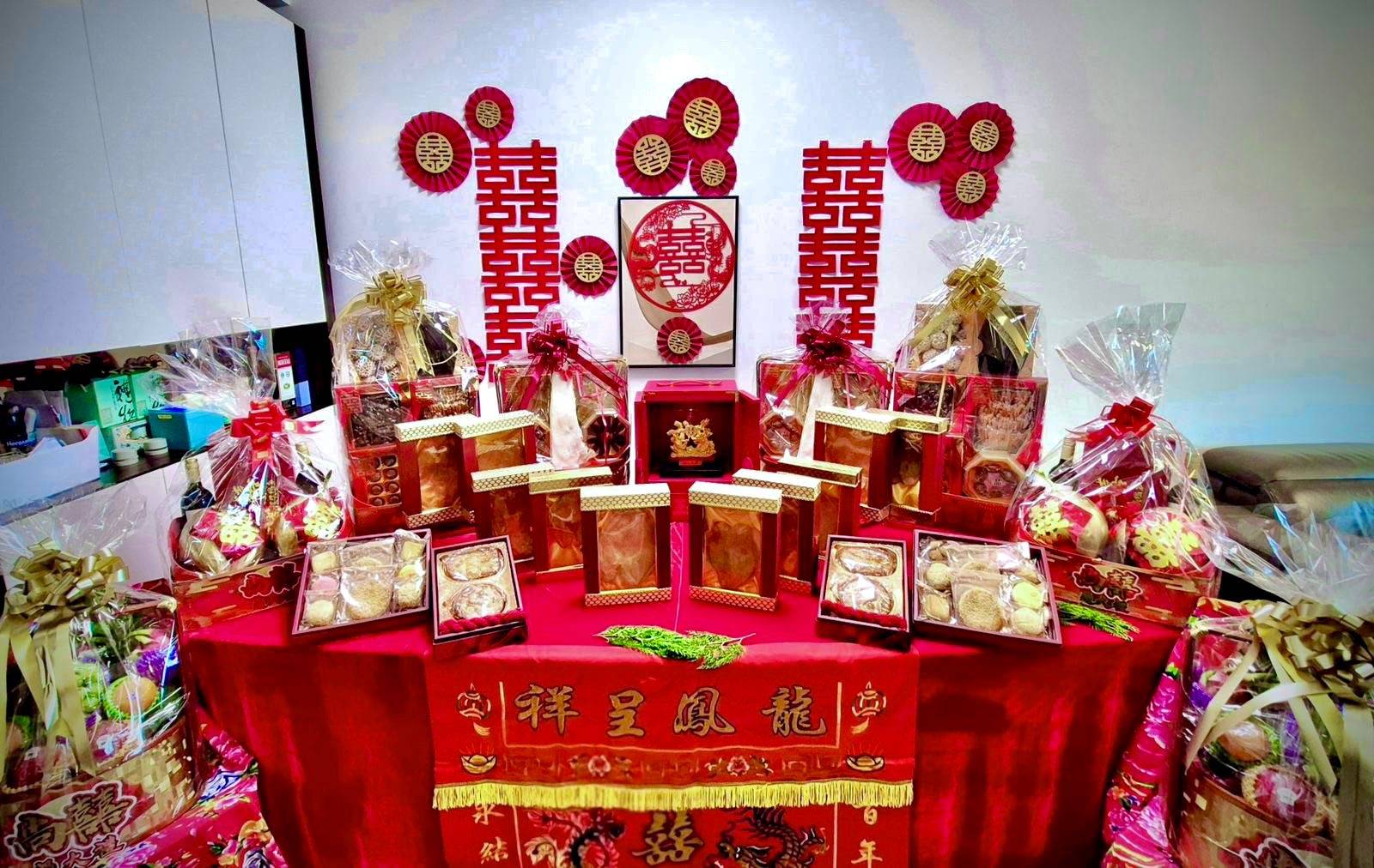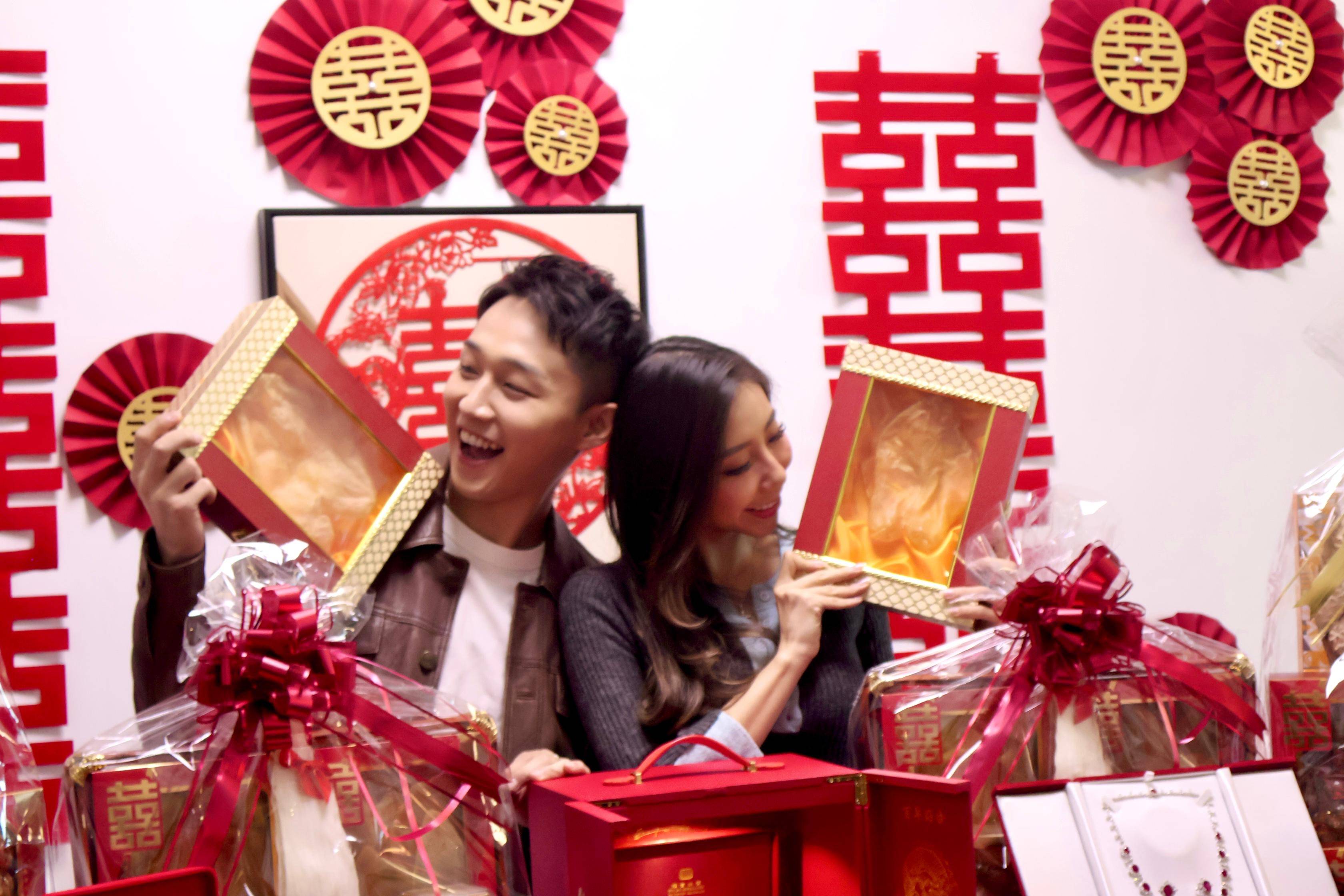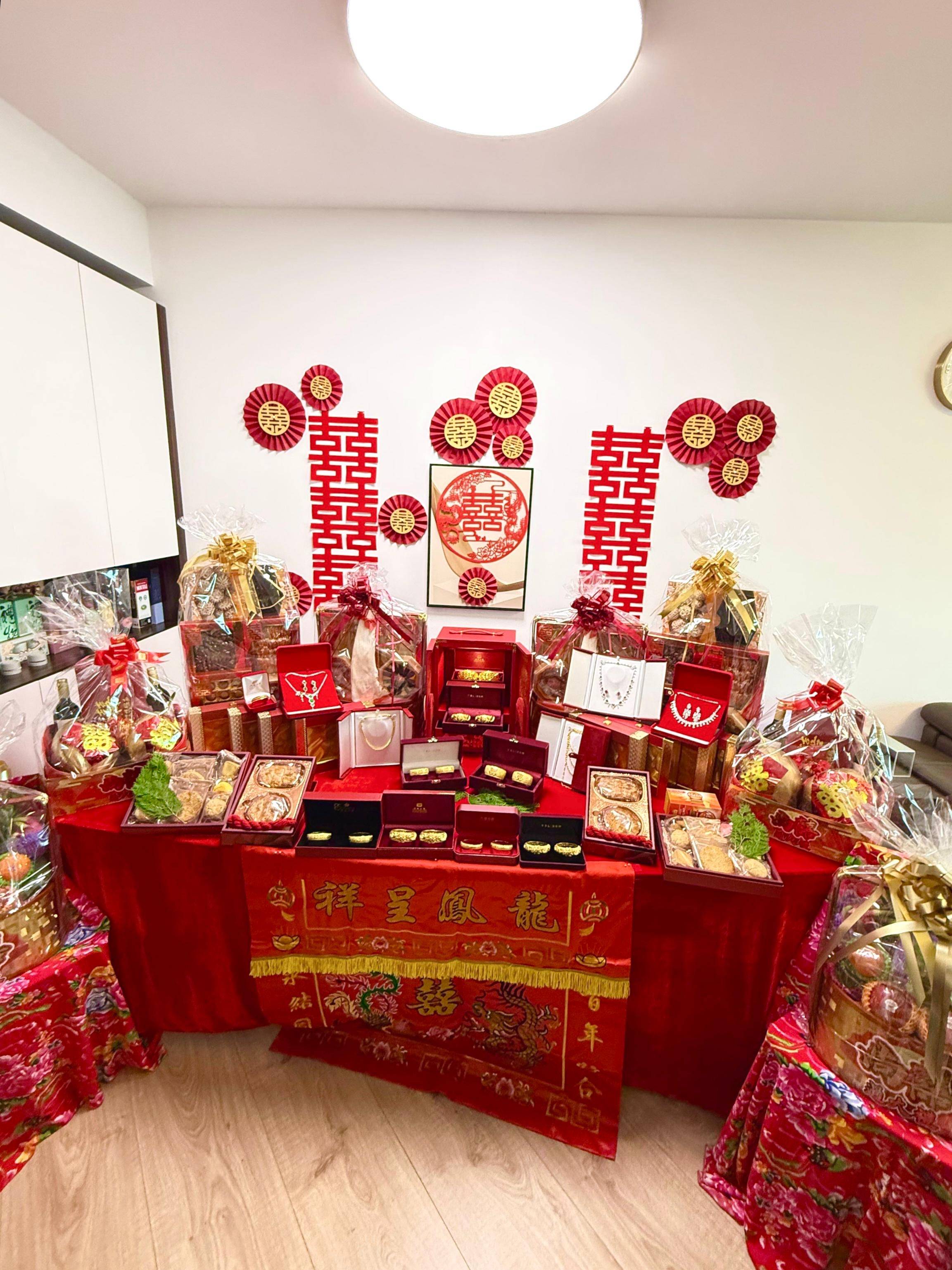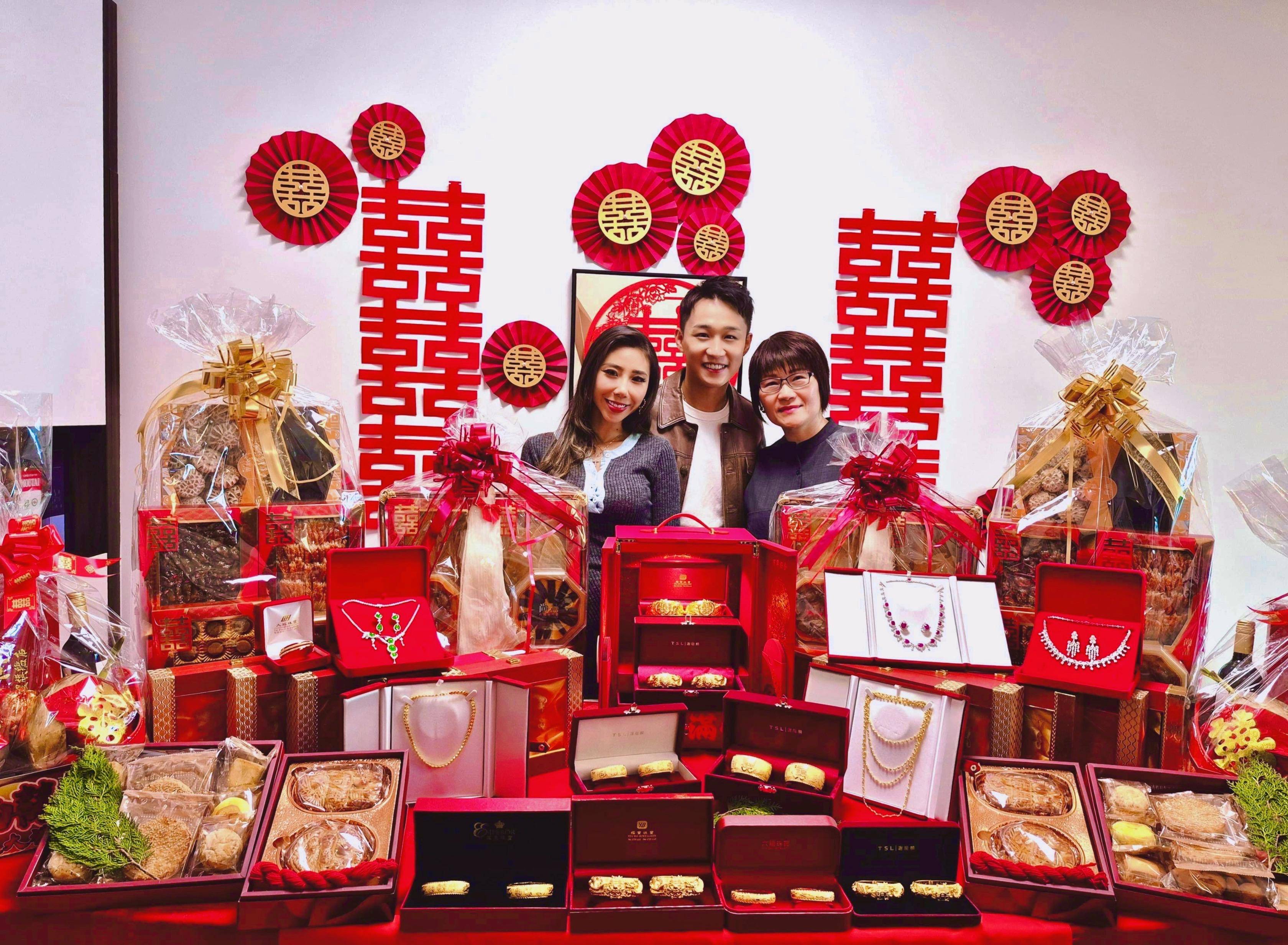 容天佑過大禮現場曝光 八籃聘禮擺滿枱