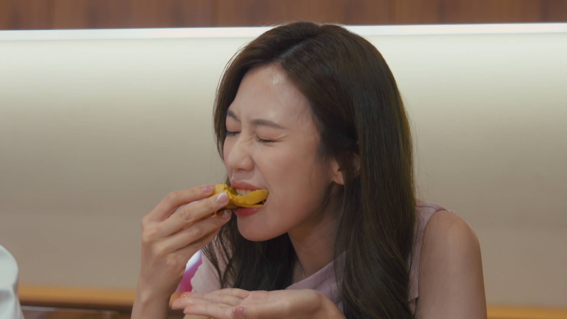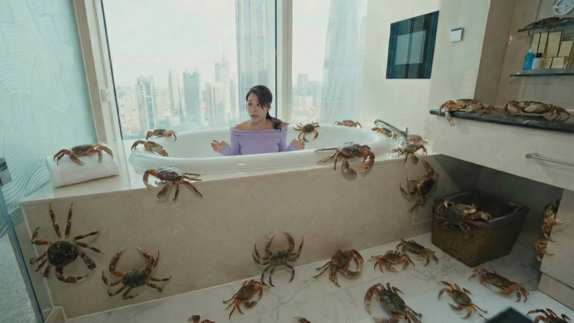 同場的何沛珈(Roxanne)則完全是另一種畫風,在節目中徹底拋下女神包袱,堪稱「瞓身演出」。在開首的小劇場中,她扮演「宿醉」睡醒,不但以「烏wear」Look現身,更不惜將筷子插在頭上,以「包租婆」造型大搖大擺,喜感大爆發。其後在介紹壁球主題餐廳時,Roxanne更「戲精」上身,為與林凱恩上演一場火花四濺的爭仔大戰,不顧形象當街剝衫,甚至發動「Pat Pat攻擊」擾亂對方,瘋狂舉動令人期待她在節目中還會有甚麼出位表現。