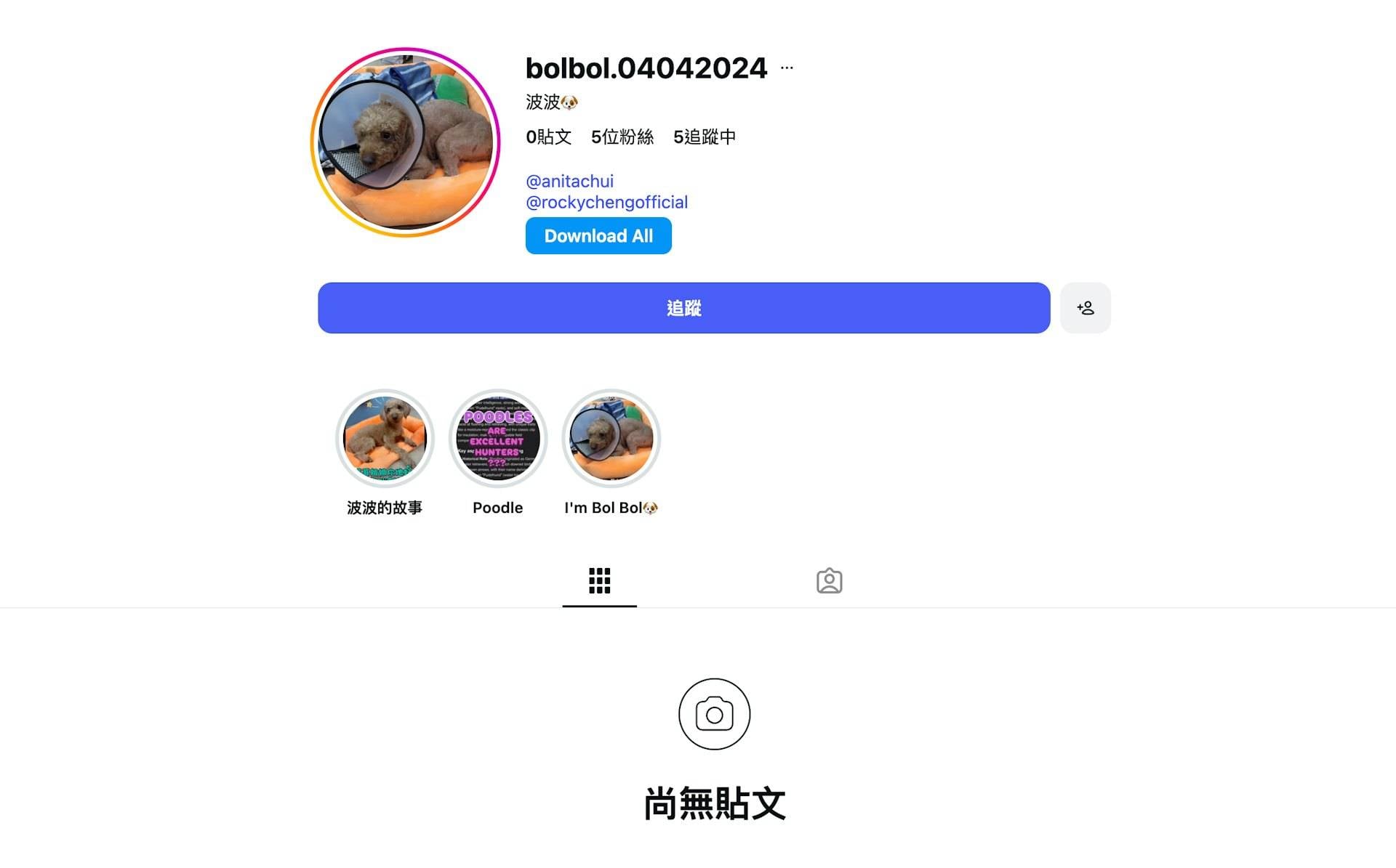 Rocky與崔碧珈開新IG,呼籲領養狗狗勁有愛。(圖片來源:鄭健樂IG)