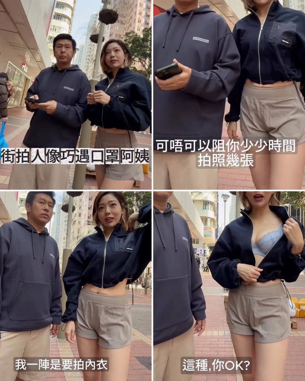街頭攝影師「捕獲」口罩阿姨鬧市示範內衣Catwalk 老公現身留言表示交足戲