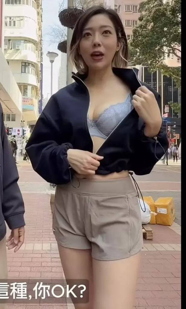 街頭攝影師日前在鬧市遇到徐蒨寧,原本只是想拍攝她的運動造型,豈料這位39歲辣媽竟然相當大方,透露自己「等陣要影內衣」,直接當街拉開拉鍊露出內衣,並自信地示範起Catwalk步法。攝影師被她的專業態度震撼,立即拍攝並上載影片,留言表示「第一次街拍內衣相👙 Thx 阿姨抽時間比我影」。