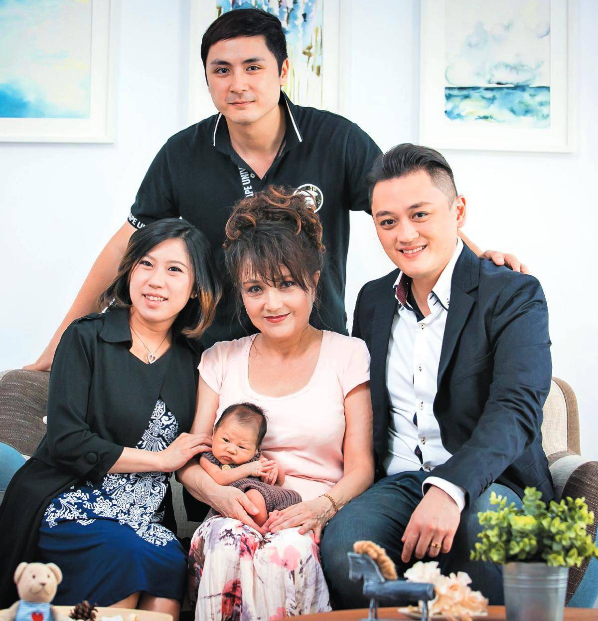 施明 李家鼎 2016年李泳漢誕第一胎,同母親施明、細佬李泳豪三代同堂一齊影全家福。(圖片來源:新傳媒資料室)