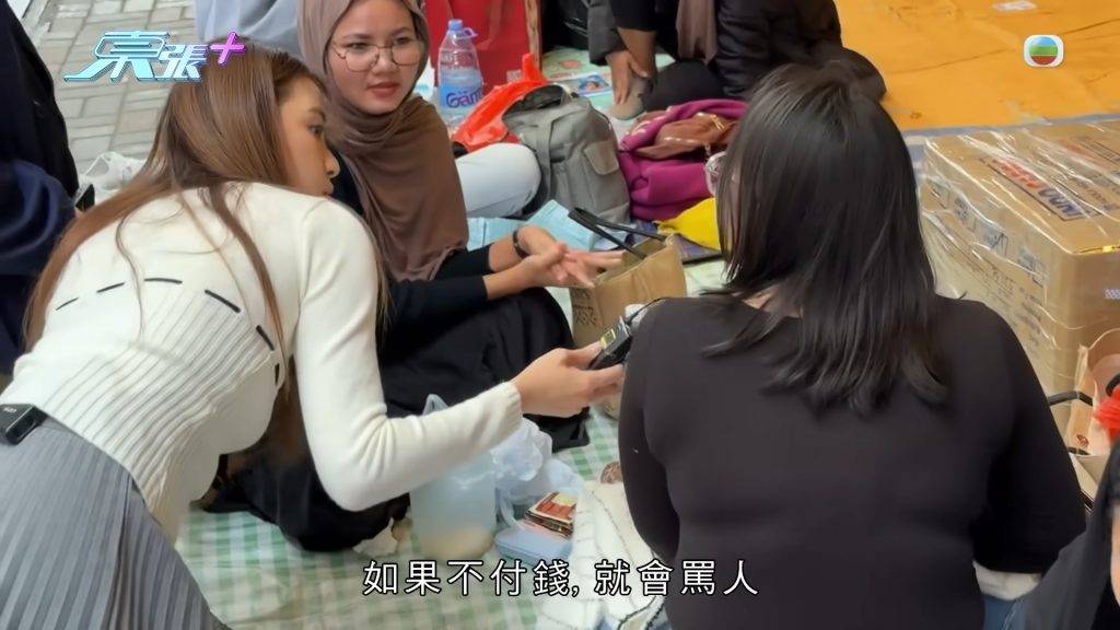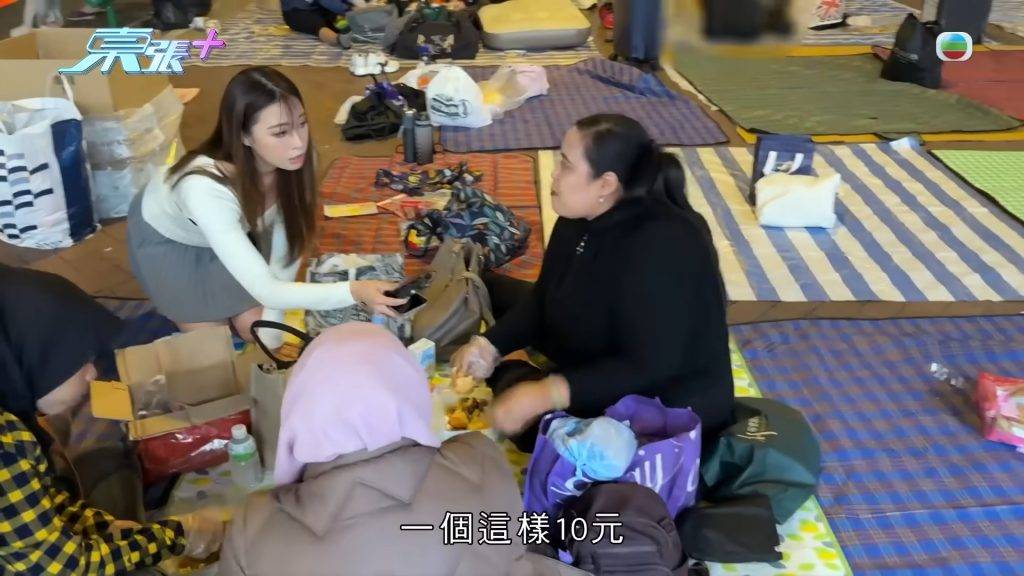 近日 《東張西望》俞可程報道美孚新邨出現三名婆婆每逢周日鋪紙皮霸位,向外傭姐姐收取「買位錢」,引發街坊及外傭不滿。身穿灰色短裙的俞可程連日跟蹤,發現紅衫婆婆是美孚新邨的居民,每個周六晚9時就開始忙碌鋪紙皮,親姊妹也在場幫忙。 俞可程更親自俯身採訪席地而坐的外傭姐姐 ,十分貼地: