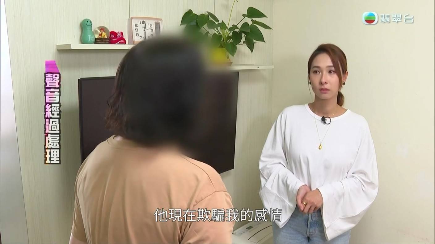 東張西望 捉姦 李旻芳聽李女士的慘通遭遇,全程眼濕濕。(圖片來源:TVB)