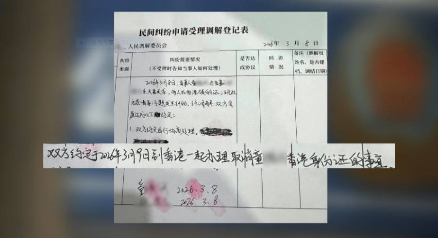 李女士丈夫在公安面前接受調解,承諾會取消香港身份證,並簽名打手指模作實。(圖片來源:TVB)