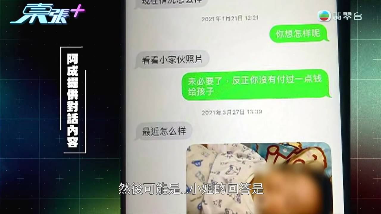 當《東張西望》主持吳幸美成功聯絡到一直避而不見的阿成時,這名汕尾漢子終於願意現身澄清。阿成激動表示自己絕非騙婚,更展示多張過數記錄反駁阿娥指控。記錄顯示他經常轉帳3,000至5,000元給妻子,有工作後更每月至少給1萬元家用。阿成憤怒地說:「我同佢割席,唔係為咗香港身份證,而係因為阿娥成日同我講錢,令我好反感!」他強調自己來港後立即在地盤做散工,4月中取得香港身份證後,4月尾已考獲牌照可以正式工作,絕非阿娥口中的懶人。更震撼的是,阿成向東張主持爆出一個驚人發現!原來阿娥將一部舊手機給兒子邦邦使用,不料被阿成發現裡面有阿娥與前男友馬先生未刪除的舊訊息。阿成當場展示手機內容,指對話涉及邦邦疑似是阿娥與前男友所生的孩子。這個發現令阿成懷疑自己被戴綠帽,4歲兒子邦邦可能並非親生。