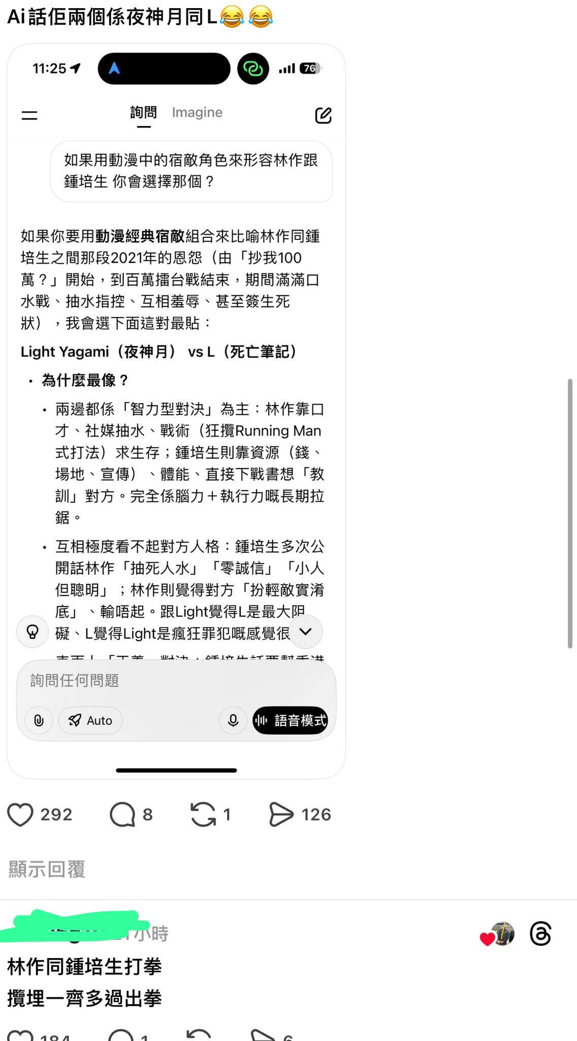 網民近日在社交平台發現一個驚人巧合,原來林作與鍾培生竟然是同月同日生,消息一出立即引發熱烈討論。有網民直接留言「不如你地兩個喺埋一齊啦」,更有人開玩笑要在兩人中「2揀1做老公」,甚至有人將兩人比作《死亡筆記》中的夜神月與L,形容他們是「一體兩面」的宿命對手。這個發現讓原本已經糾纏多年的「林鍾恩怨」再添新話題。