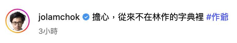 直言唔會有嘢擔心(圖片來源:林作IG)