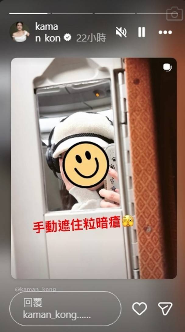 江嘉敏在飛機上打卡晒素顏照,戴上帽子與耳機一身舒適打扮的她完全啟動了旅行Mode,相當寫意。她在貼文中幽默自嘲:「係呀,我又素顏去嚇人。上機懶得化妝,不過,已經努力加咗個見得人嘅Filter,希望唔會嚇親大家,哈哈。」這種自黑式的幽默風格立即引起網民關注,不少人都被她的真性情所吸引。