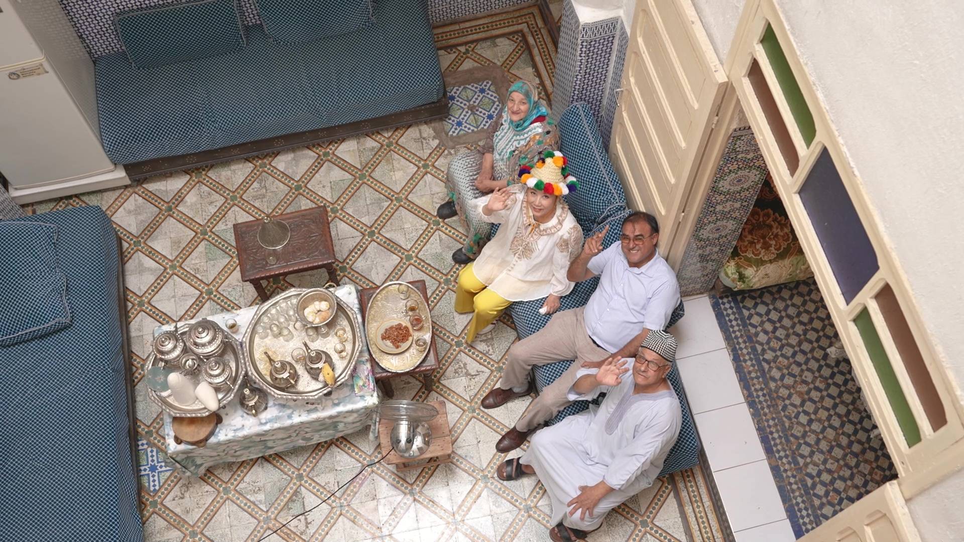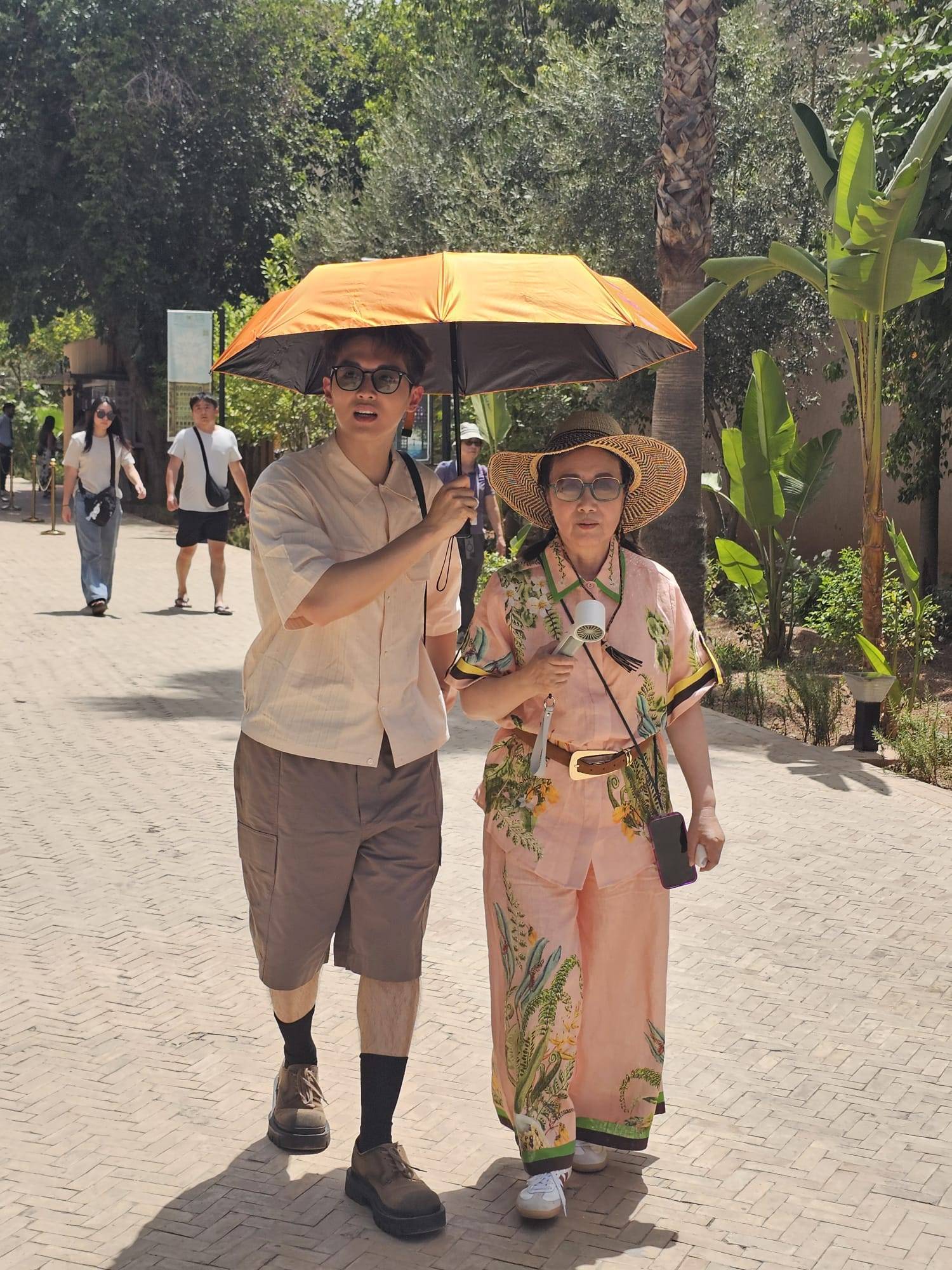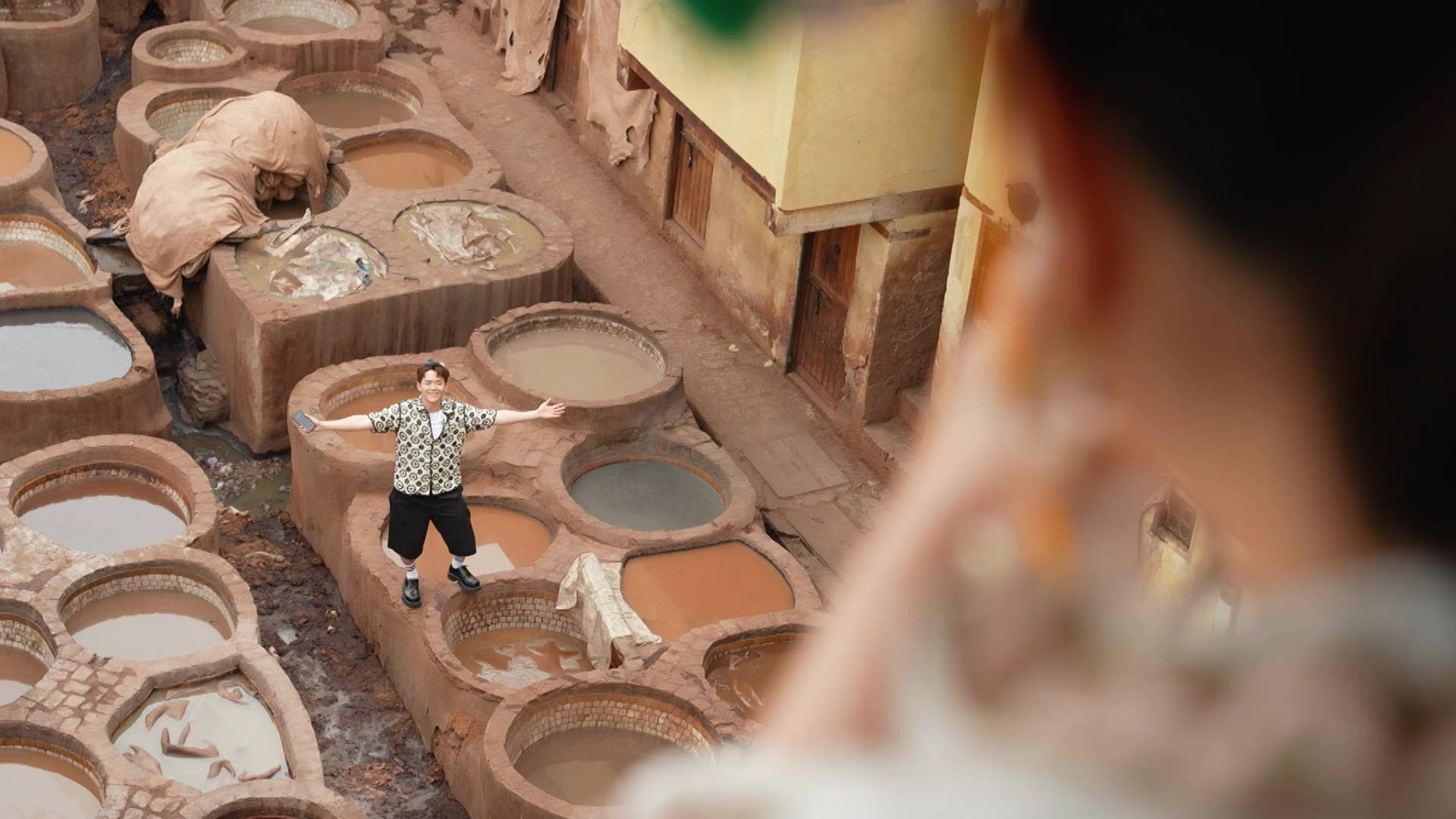 阮浩棕作為第二站的旅伴,一改周嘉洛的「口花花」路線,轉走知性暖男風格,全程不但緊緊拖實阿姐,更化身「人肉資料機」,溫柔地講解當地歷史文化,深得阿姐歡心。知道摩洛哥太陽猛烈,阮浩棕更聯同製作組,秘密訂製一把繡上Liza字樣的「五色Liza遮」,每日根據阿姐的衣著更換顏色,貼心程度爆燈!此外,二人到訪全球唯一保持人手染皮的菲斯「大染缸」,面對由動物糞便作染料而產生的濃烈臭味,阮浩棕竟鼓起勇氣,親身走入染缸之間體驗「飛缸走隙」,阿姐在旁也肉緊大叫:「小心呀真係」,並為他拍照留念,可見二人感情極好。