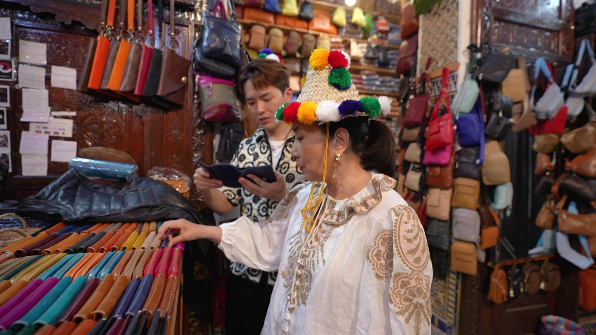 在最新播出的節目中,汪明荃與阮浩棕正悠閒地在摩洛哥古城菲斯閒逛皮革製品店,氣氛本來相當輕鬆。豈料,阿姐突然向身旁的阮浩棕發動攻勢,笑著問他:「你使唔使買啲嘢畀女友呀?」,直接將他與何沛珈的緋聞擺上枱面!面對阿姐的單刀直入,阮浩棕明顯措手不及,嚇得一時語塞,口窒窒不懂反應。身旁工作人員更加入戰團,提議他購買「情侶銀包」,令他更加尷尬。阮浩棕情急之下,馬上拖阿姐落水轉移視線,可惜卻慘遭阿姐大派檸檬,逼供場面既緊張又搞笑。