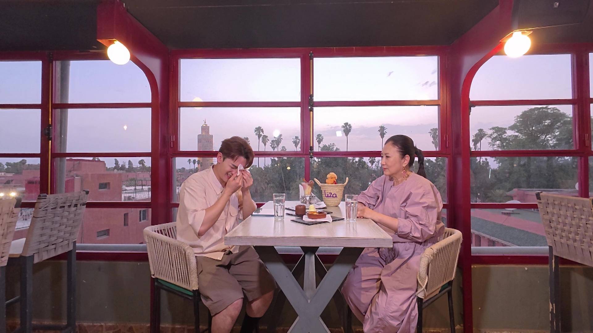 在摩洛哥旅程最後的互送禮物環節,當阮浩棕以為一切已結束時,阿姐與製作組卻偷偷準備了終極彩蛋。阿姐感性地表示:「你成日話遺憾冇帶嫲嫲一齊去旅行,我依家畀個機會你同佢去旅行」,隨即播出一段AI生成的旅行短片。片中,阿姐化身「梁舜燕」,與阮浩棕在摩洛哥各個景點打卡暢遊,畫面更配上AI生成的梁舜燕聲音說出:「好開心,I Love You」,效果極為逼真震撼。一向是孝順孫的阮浩棕看到影片後情緒秒速崩潰,當場哭成淚人,場面令人心酸又感動,阿姐見狀即上前溫柔安撫,猶如真嫲孫一樣,相當有愛。