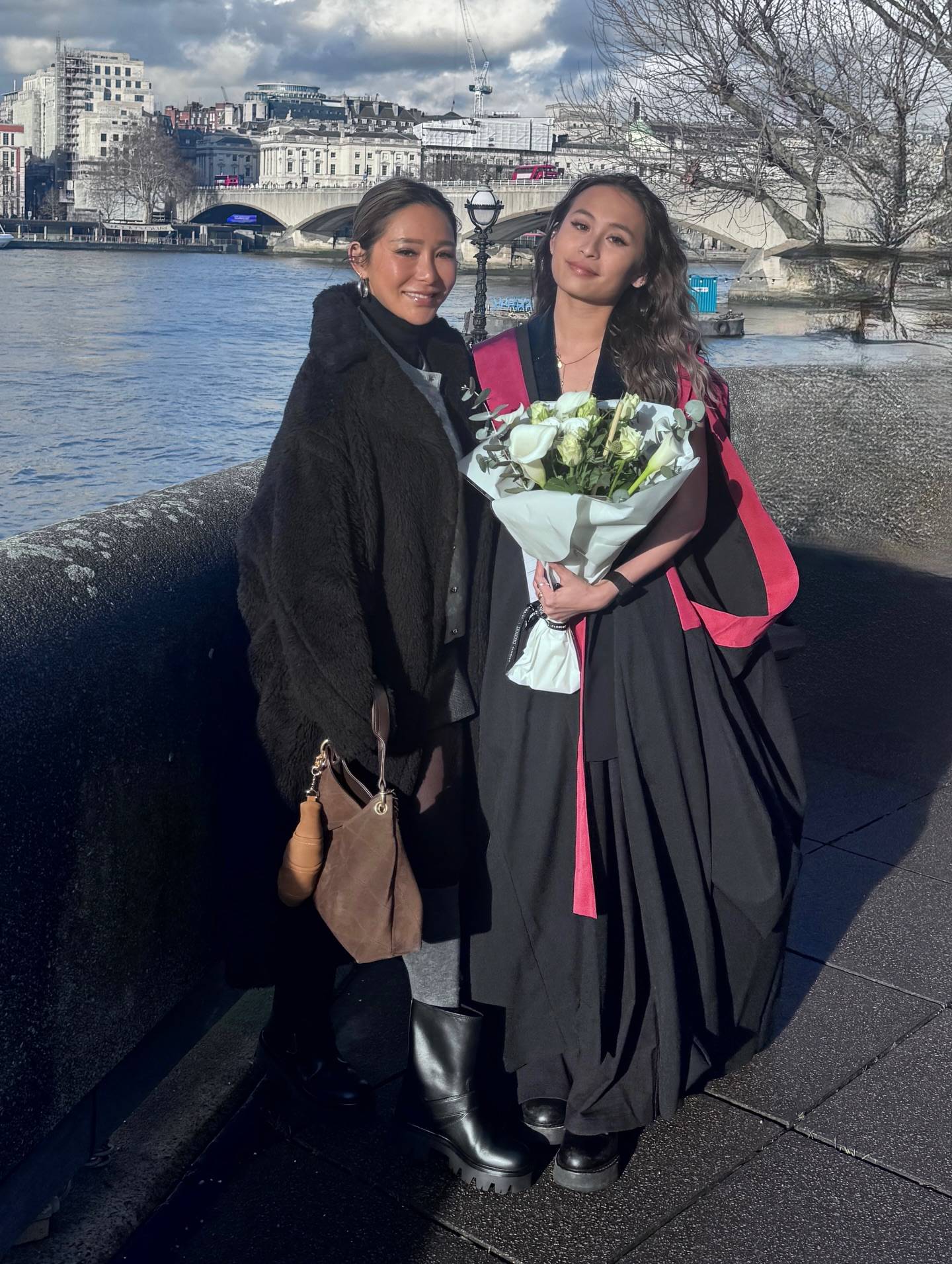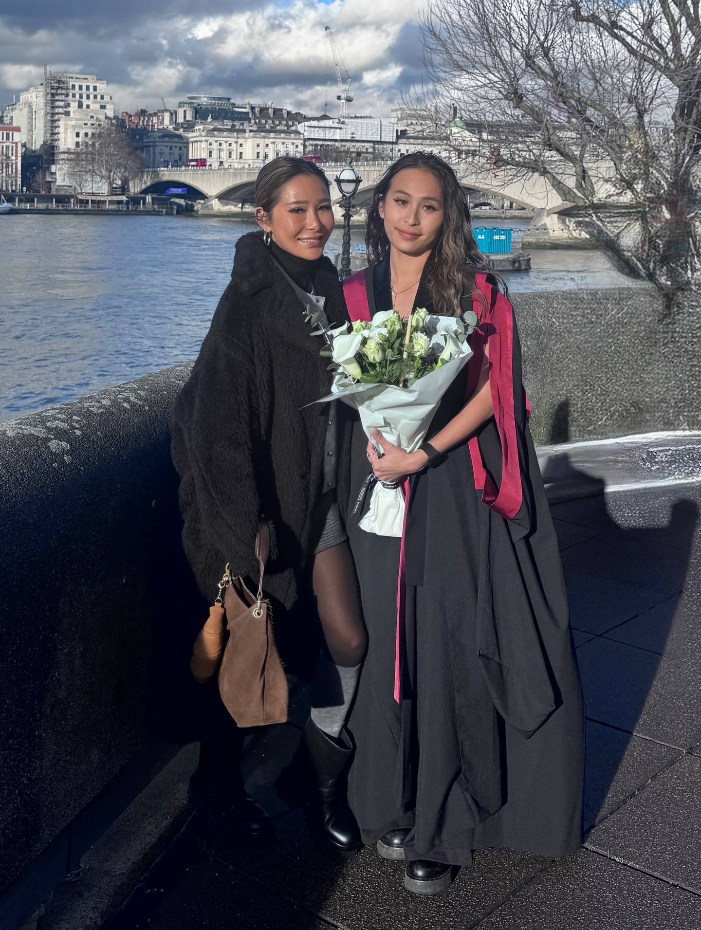 陳慧玲日前在社交平台晒出多張溫馨合照,相中可見周梓潼身穿畢業袍,亭亭玉立充滿自信,散發出成熟女人味。從陳慧玲公開的畢業證書可見,Virginia在倫敦國王學院修讀臨床心理治療理學碩士學位,並以最高等級的「Pass with Distinction」優異成績畢業。這間英國頂尖學府的心理學課程競爭激烈,能夠取得一級榮譽成績實屬不易,足證Virginia的學術實力。