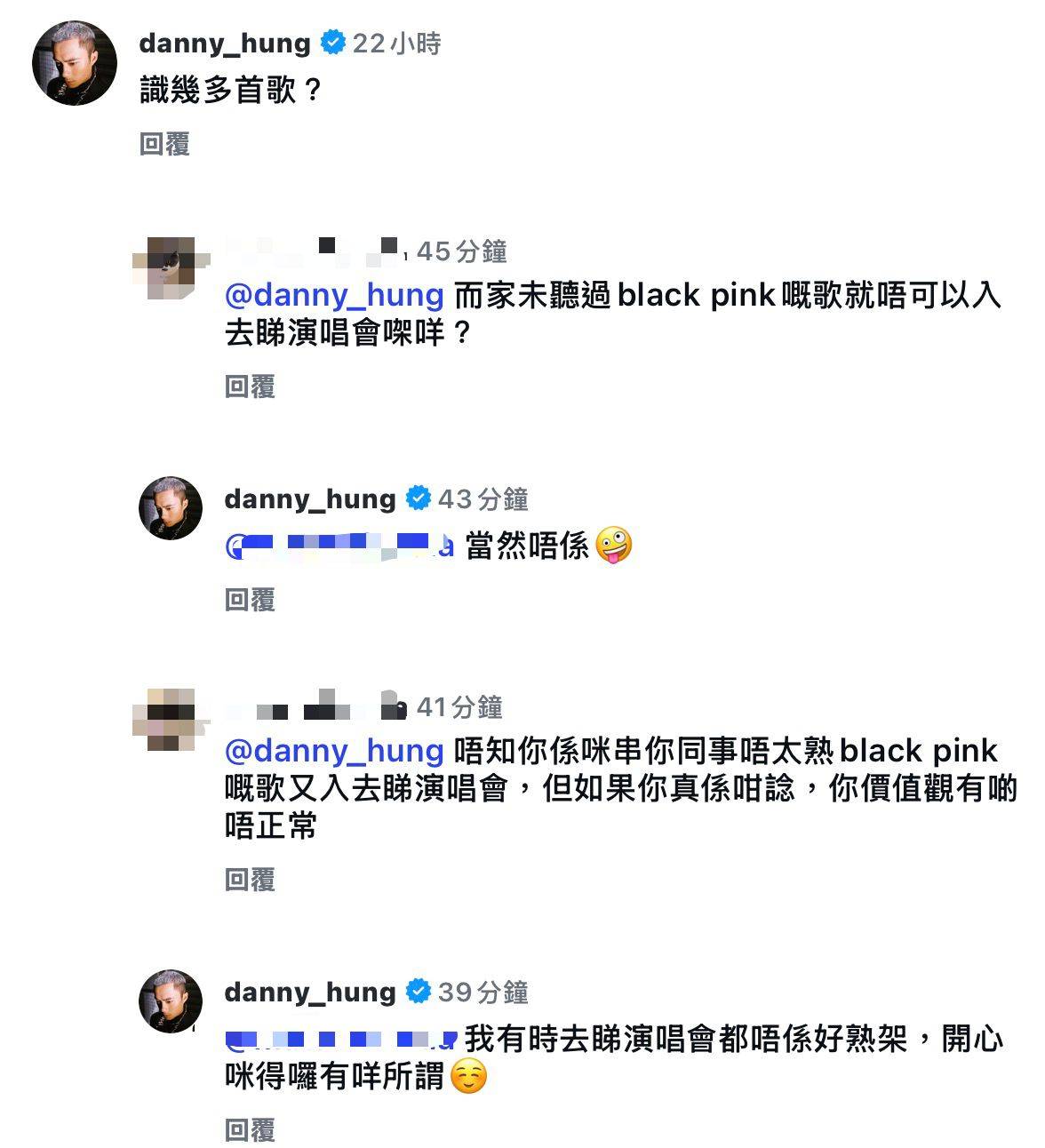 面對網民嘅質疑,孔德賢其後在留言區回應粉絲查詢,當有人問佢「而家未聽過black pink嘅歌就唔可以入去睇演唱會㗎咩?」時,佢回覆「當然唔係🤪」。當再有網民質疑佢價值觀有問題時,孔德賢進一步解釋「我有時去睇演唱會都唔係好熟架,開心咪得囉有咩所謂☺️」。