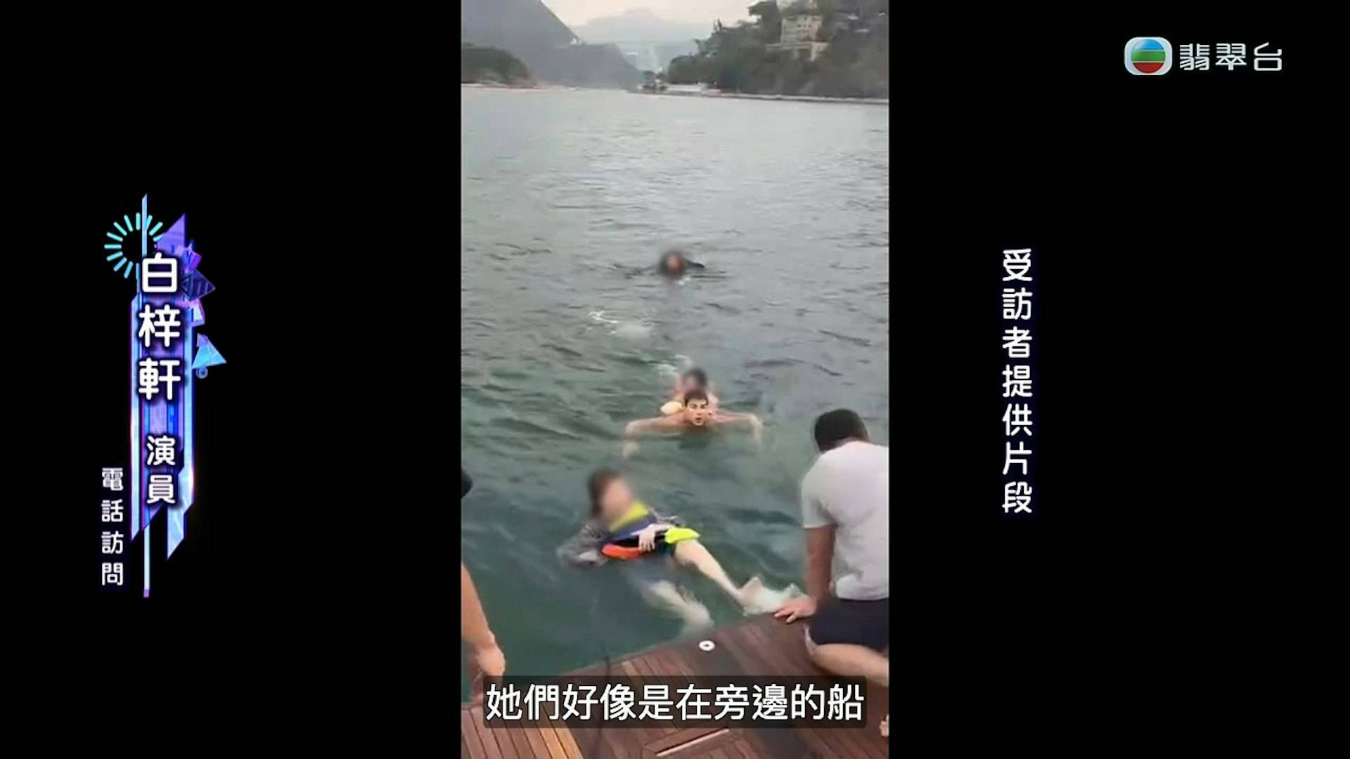 白梓軒 救人 白梓軒接受東張主持黎寬怡電話採訪時表示,當時見到兩少女在海中浮沉,他聽到二人叫救命,立即除下衫褲,只剩內褲跳落海。(圖片來源:TVB)