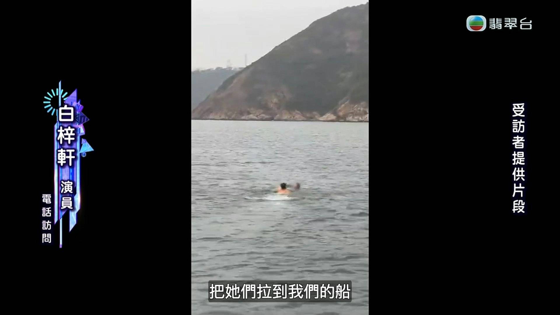 白梓軒 救人 兩位事主的救生衣鬆脫,幸好白梓軒及時救起她們。(圖片來源:TVB)