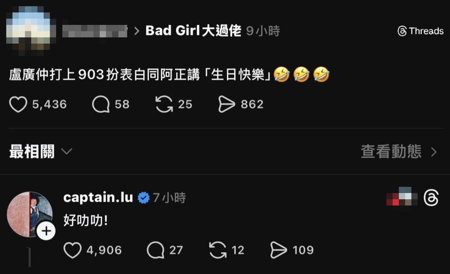 盧廣仲事後都有回應網民!(圖片來源:Threads圖片)