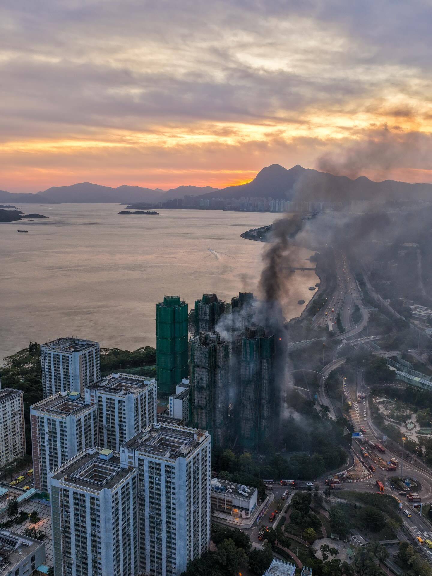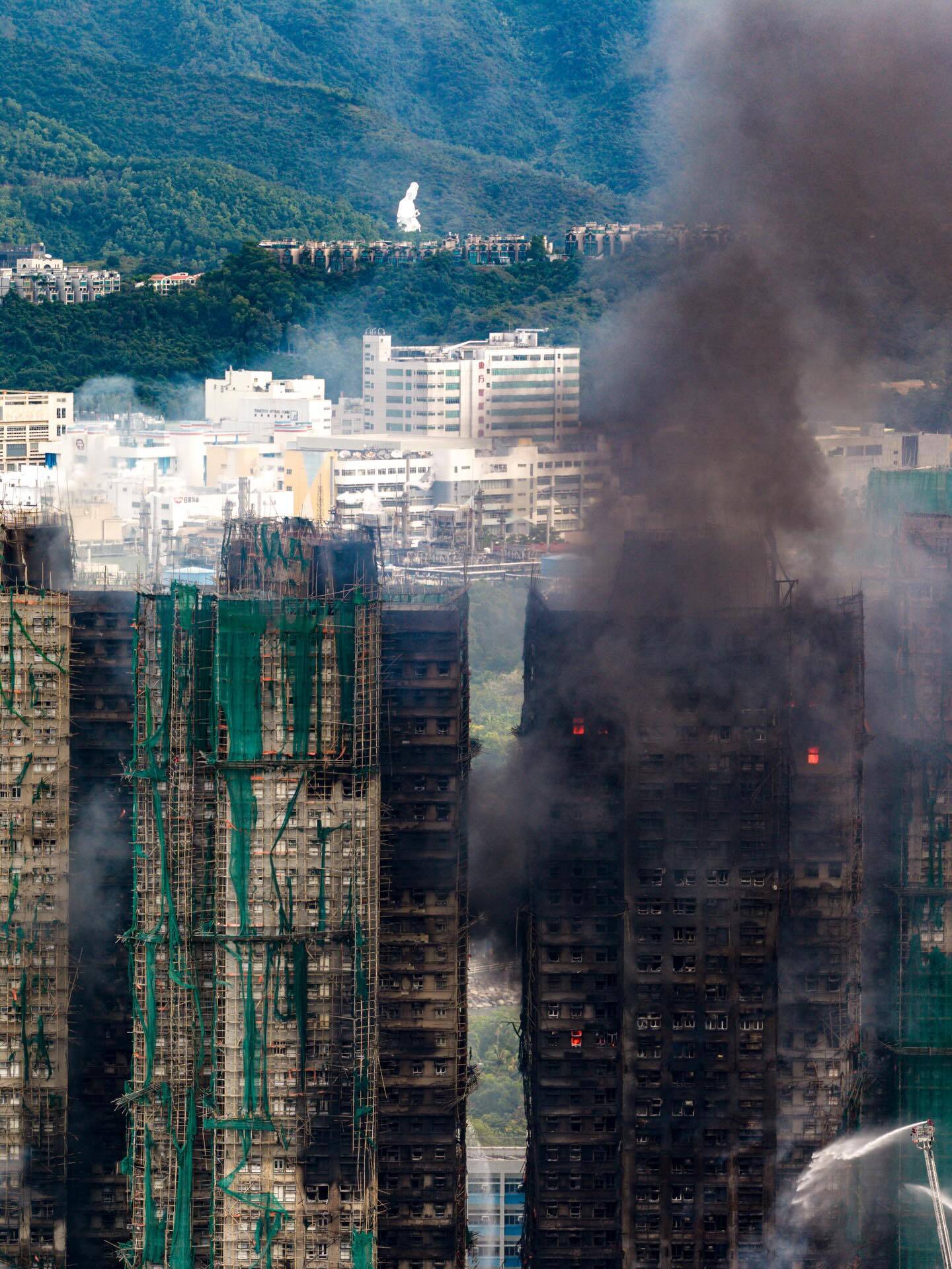 Austin Bell在大埔火災期間仍留在香港,並用航拍機拍攝了令人難忘的畫面。其中一張相片遠望到慈山寺觀音俯瞰整個大埔災區,這個角度讓人心頭一緊,彷彿觀音菩薩正在默默守護著受災的居民。Austin今早更po出用航拍機拍下正在冒煙的宏福苑現場,記錄了這個歷史性時刻的真實面貌。