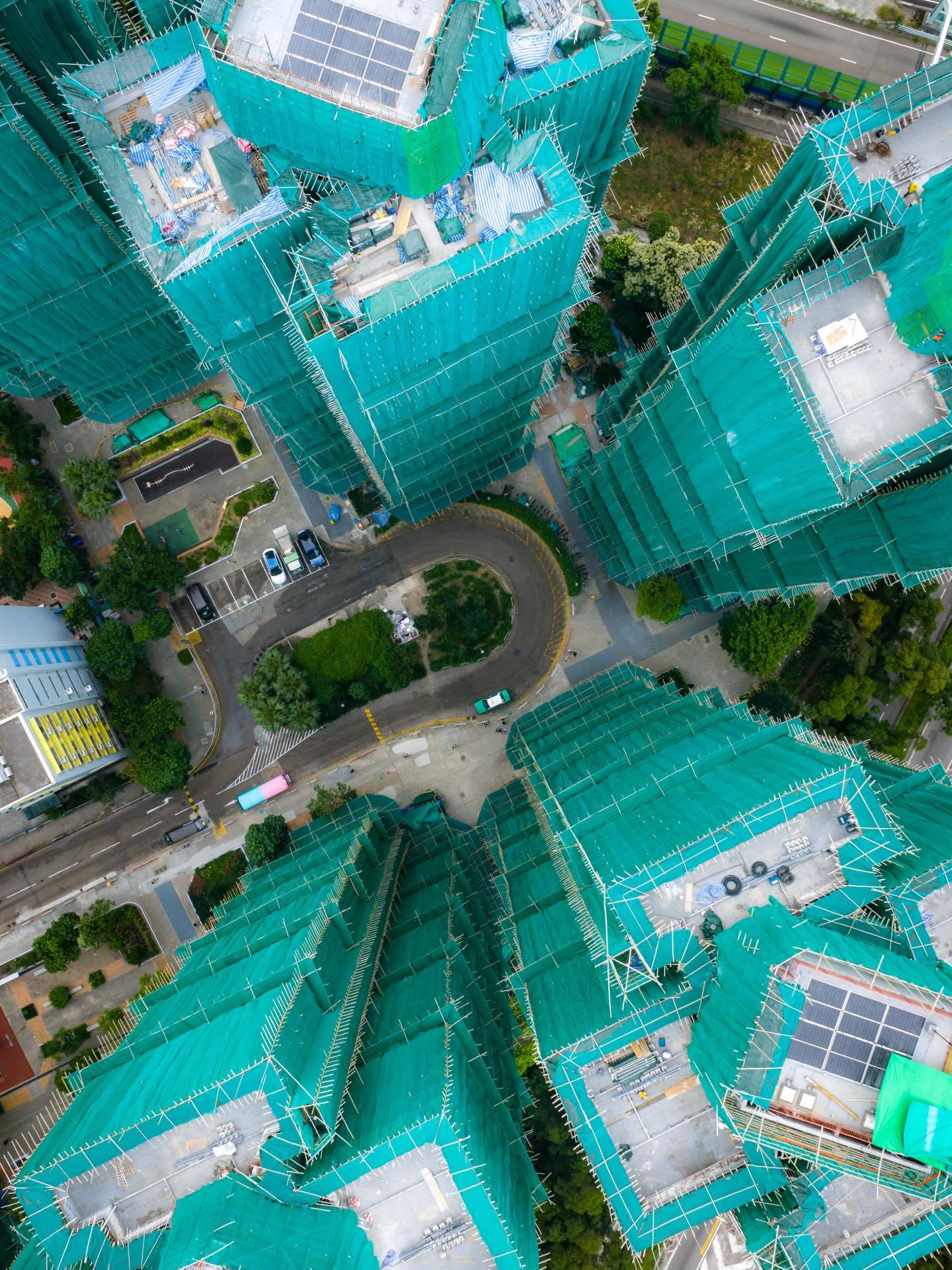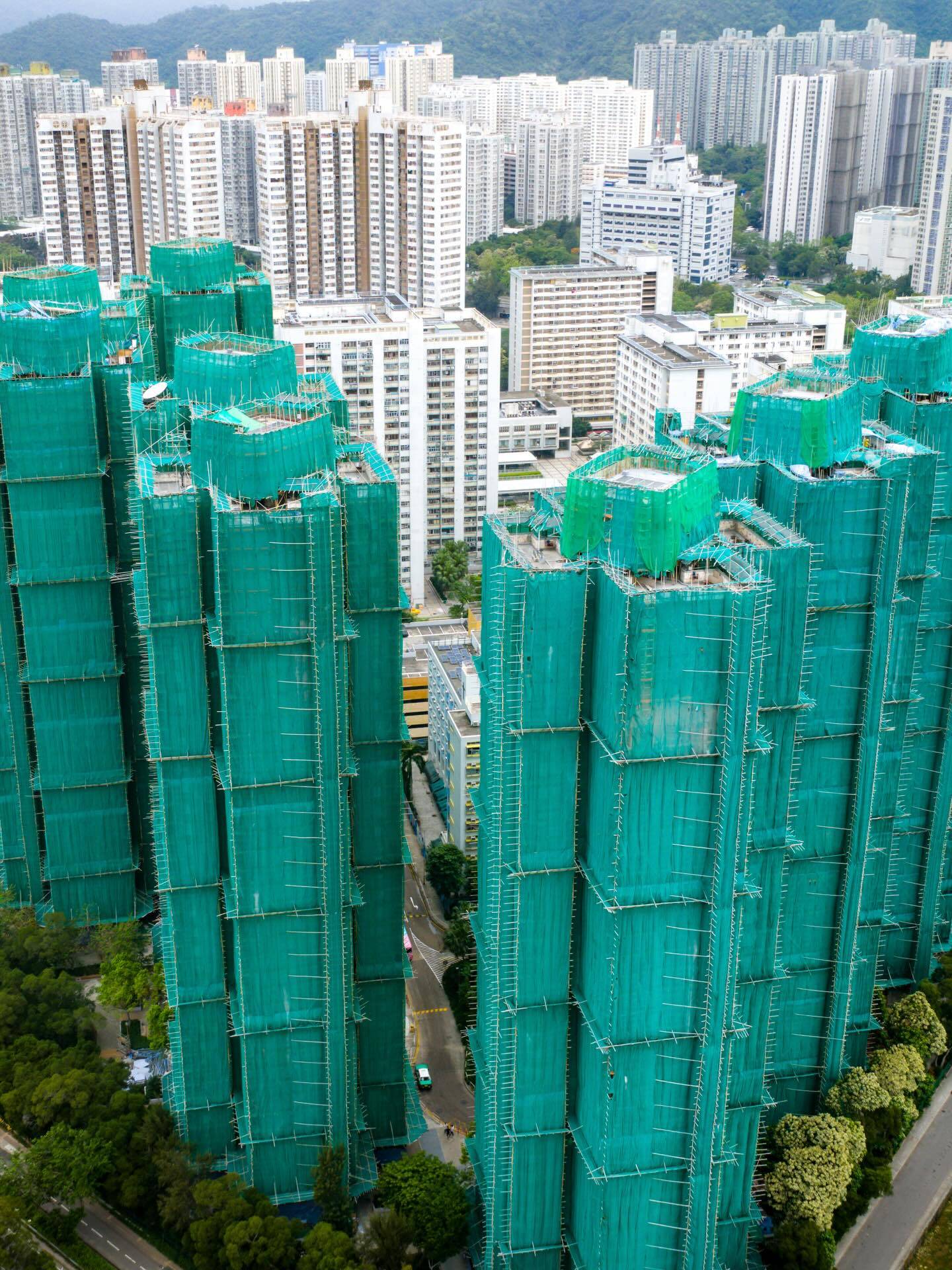 以捕捉香港城市高空視角聞名的美國航拍攝影師Austin Bell,其香港各區籃球場系列作品廣為人知。今日他在社交平台分享了宏福苑的珍貴舊照,時間跨越2020年至2024年,記錄了這座屋苑從原本啡色外牆到維修期間被綠色棚網包圍的不同面貌。這些影像見證了宏福苑在災難發生前的最後歲月,成為極具歷史價值的視覺檔案。