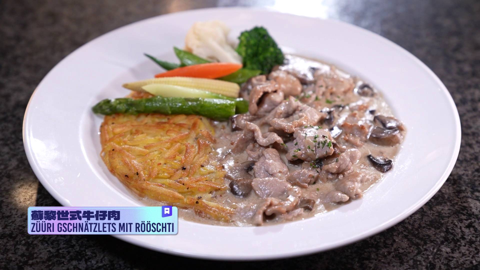 Jacque首先點了傳統芝士火鍋,並解釋這道菜在瑞士的特殊意義:「芝士火鍋就如港人打邊爐一樣,是朋友間聯誼社交的方式。」打破了不少人對芝士火鍋只是普通菜式的印象。接著上桌的還有蘇黎世式牛仔肉、牛仔腰配忌廉酒汁等特色菜,Jacque更即席教暉哥每款菜式的瑞士語正確讀音,讓暉哥不禁大讚此行獲益良多,不只食到美食,更上了一堂寶貴的文化課。