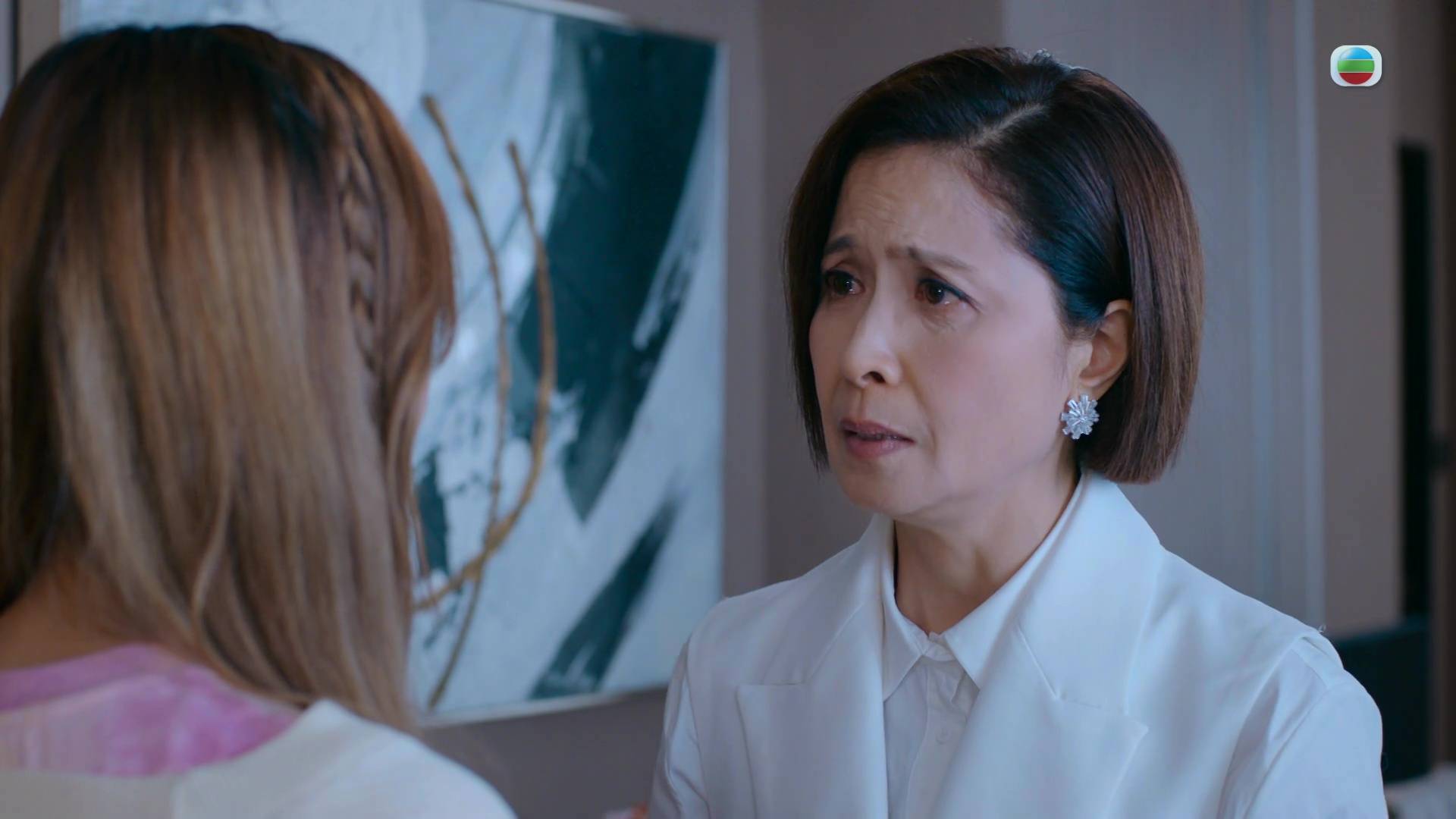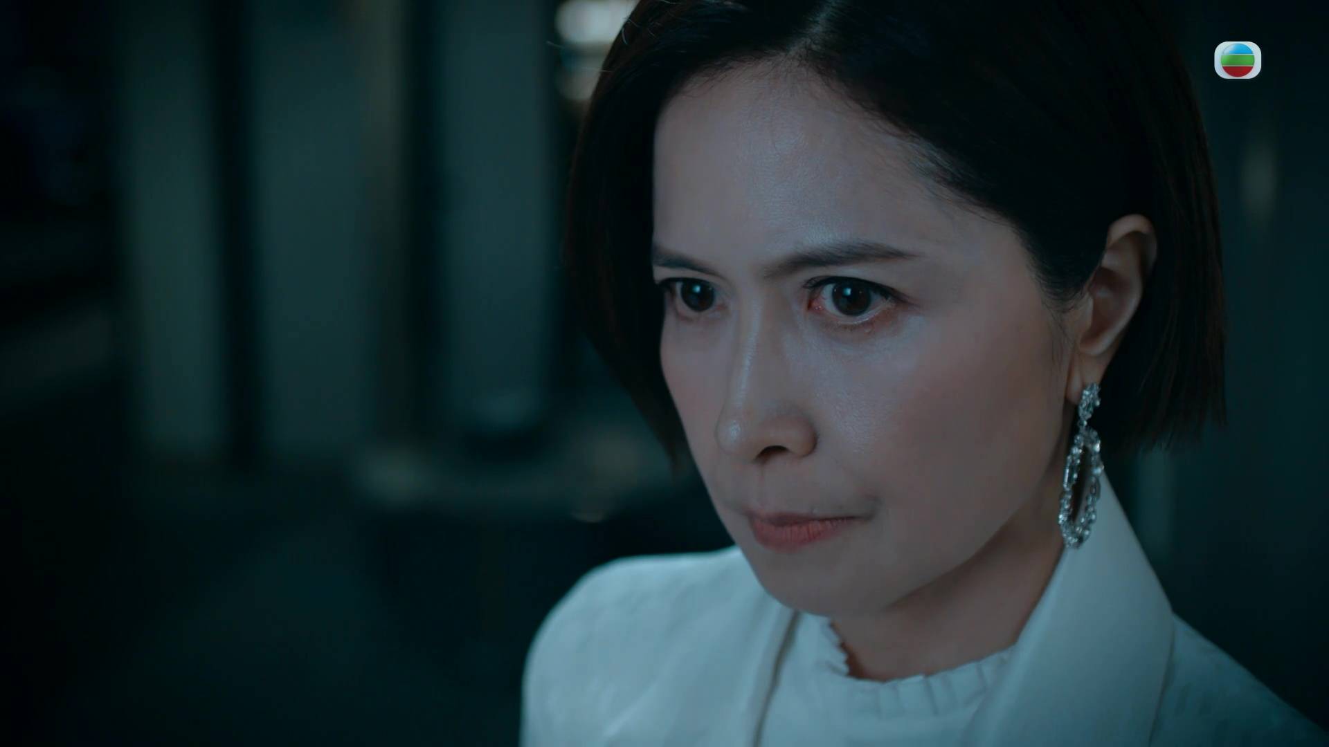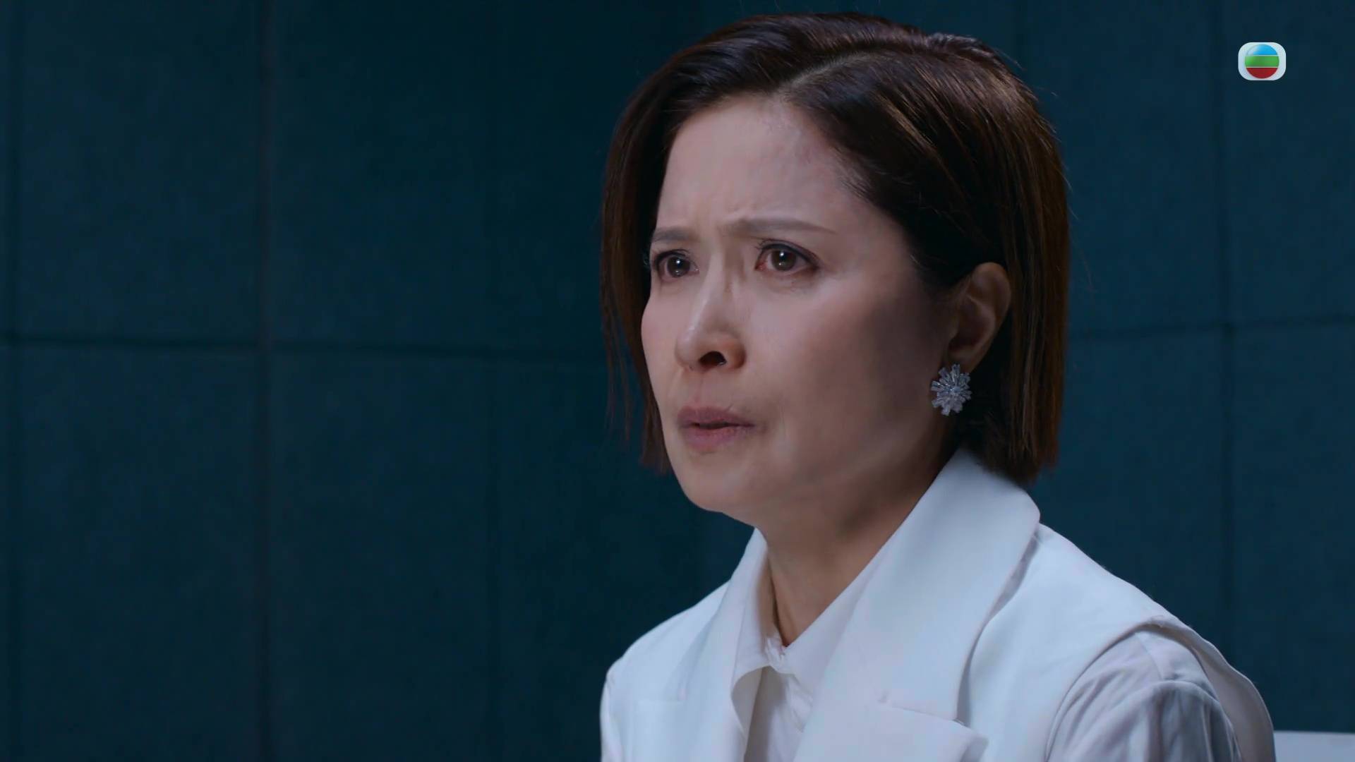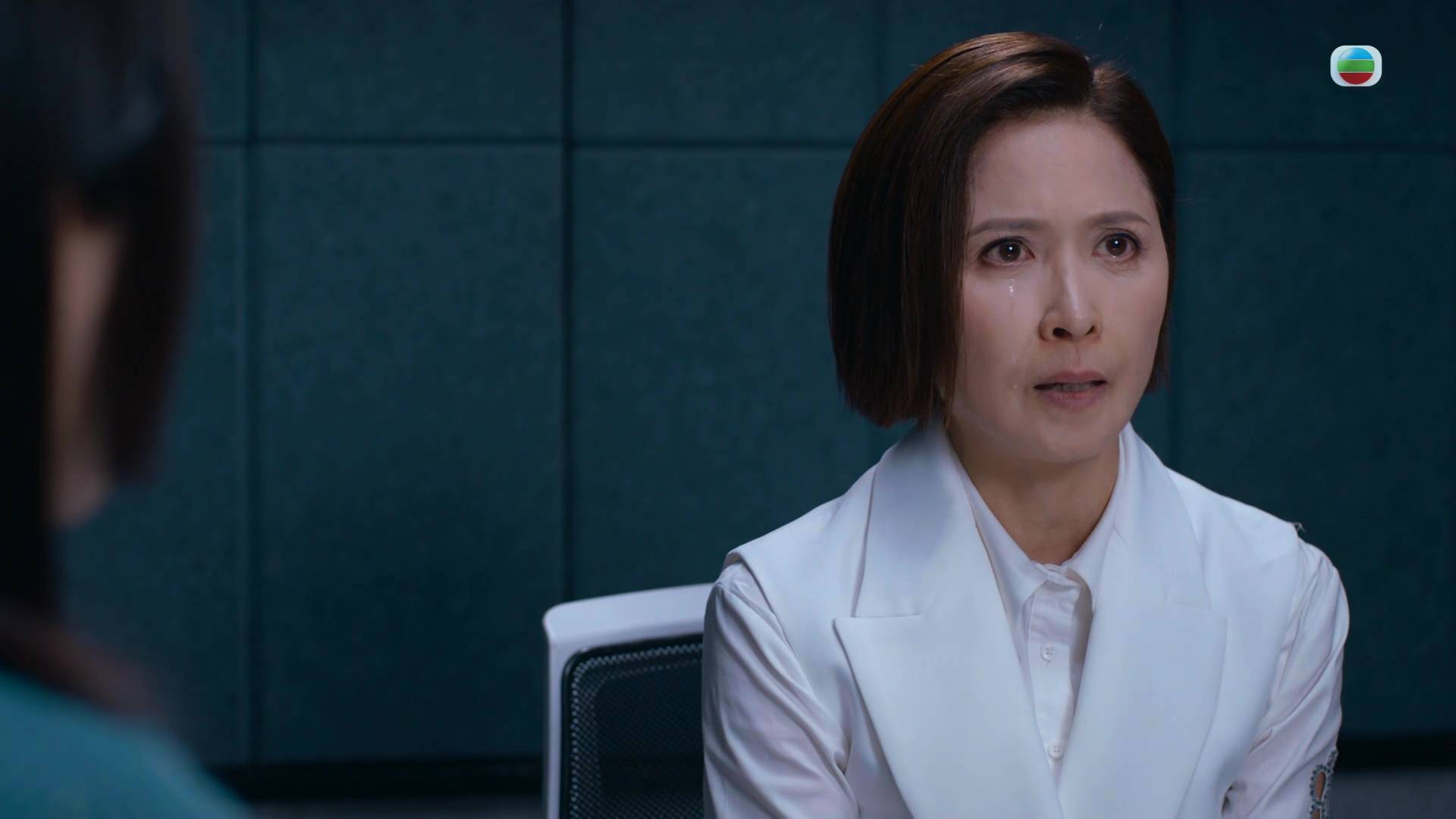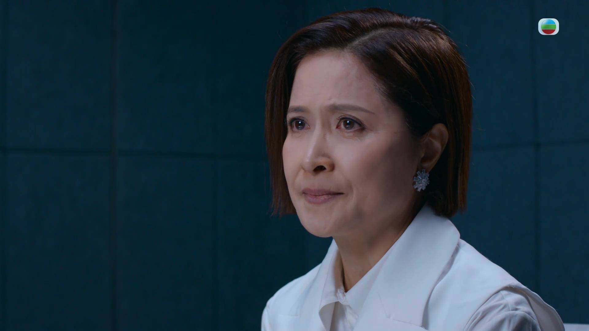 經歷情緒的巨大起伏後,在警局落口供的場口,邵美琪再度轉換演法,以一種心力交瘁的狀態,演繹角色的愧疚與內心掙扎。最令人驚喜的是,當她拜託三位嬌娃時,竟流露出角色前所未見的軟弱一面,輕聲請求:「喺我唔喺佢(寶儀)身邊呢段日子,你哋盡量幫我睇住佢」。這個層次的轉變,展現了角色從強勢到心死的過程,邵美琪的演繹極具說服力,將一個複雜母親的心路歷程完整呈現。