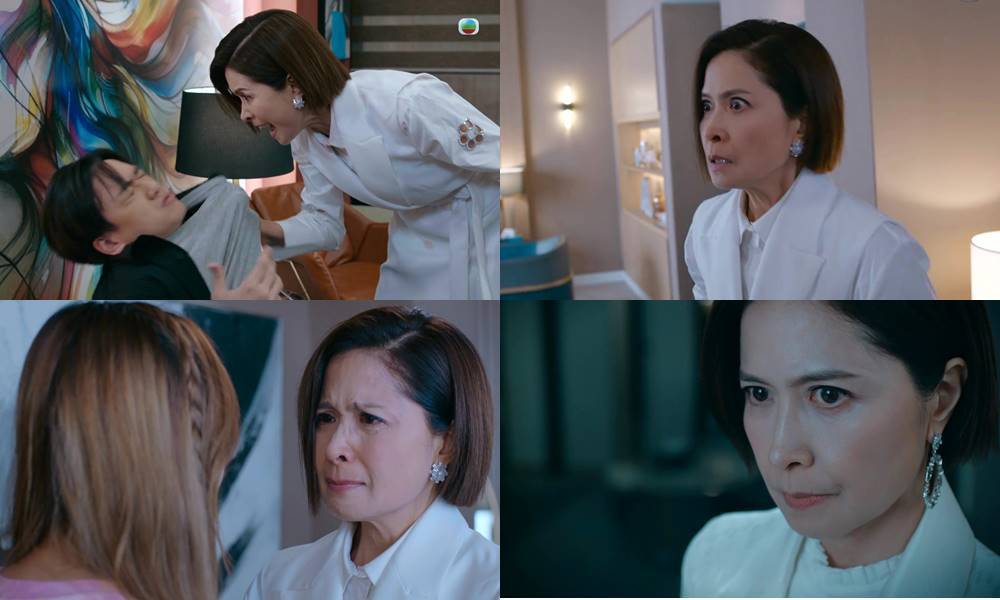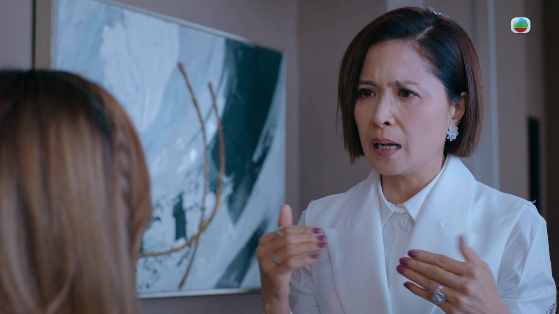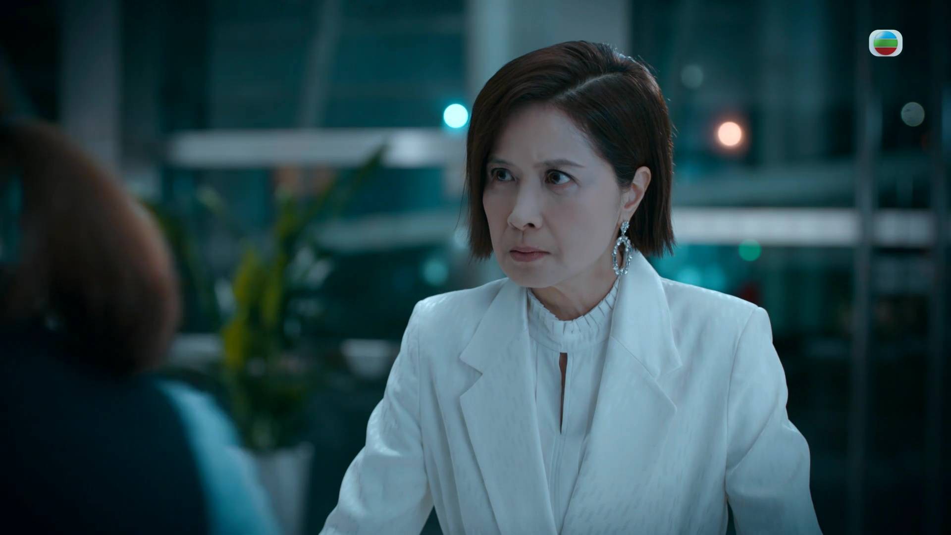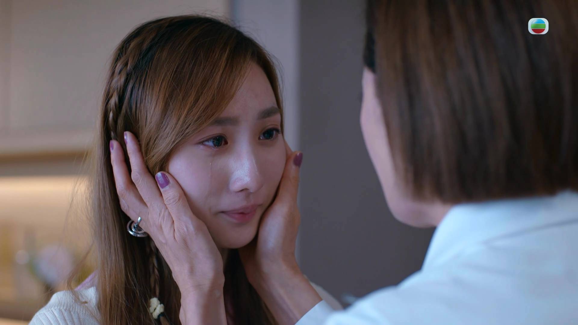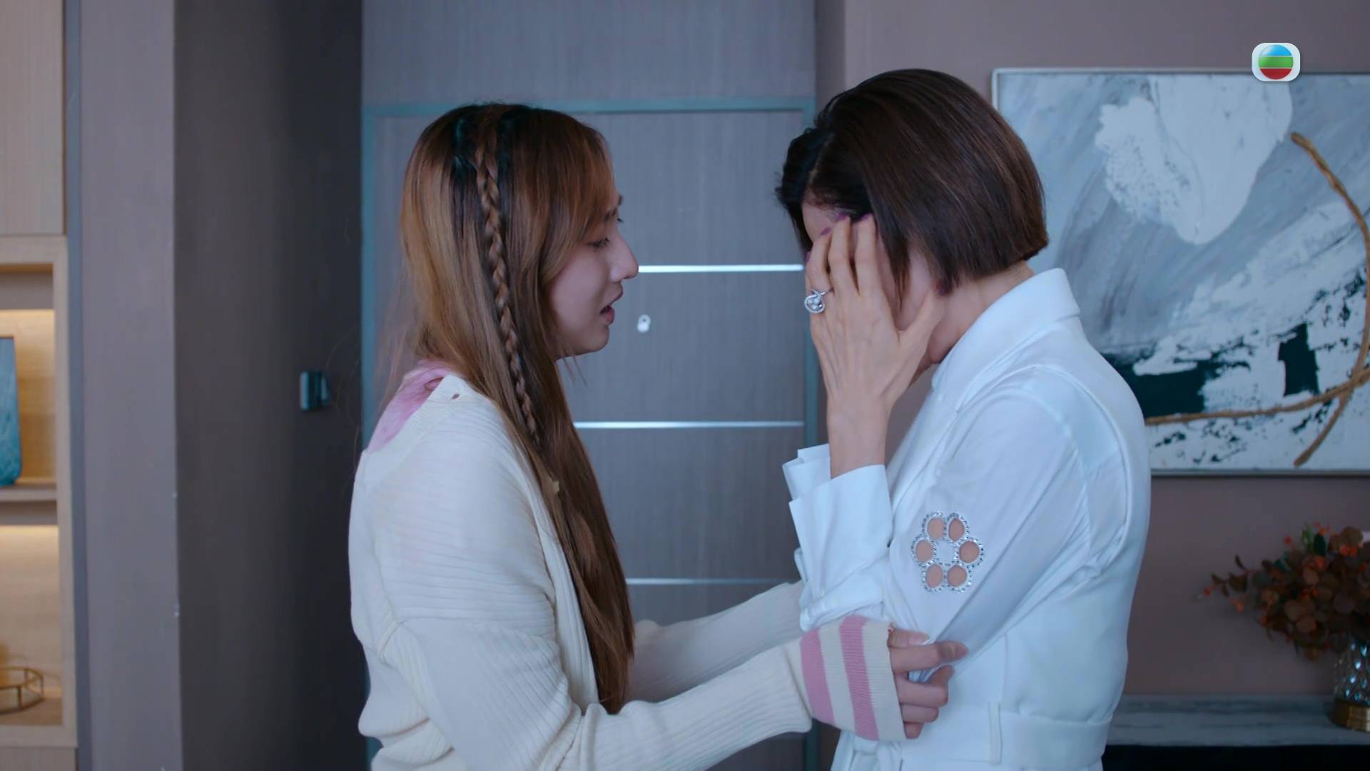 經歷情緒的巨大起伏後,在警局落口供的場口,邵美琪再度轉換演法,以一種心力交瘁的狀態,演繹角色的愧疚與內心掙扎。最令人驚喜的是,當她拜託三位嬌娃時,竟流露出角色前所未見的軟弱一面,輕聲請求:「喺我唔喺佢(寶儀)身邊呢段日子,你哋盡量幫我睇住佢」。這個層次的轉變,展現了角色從強勢到心死的過程,邵美琪的演繹極具說服力,將一個複雜母親的心路歷程完整呈現。