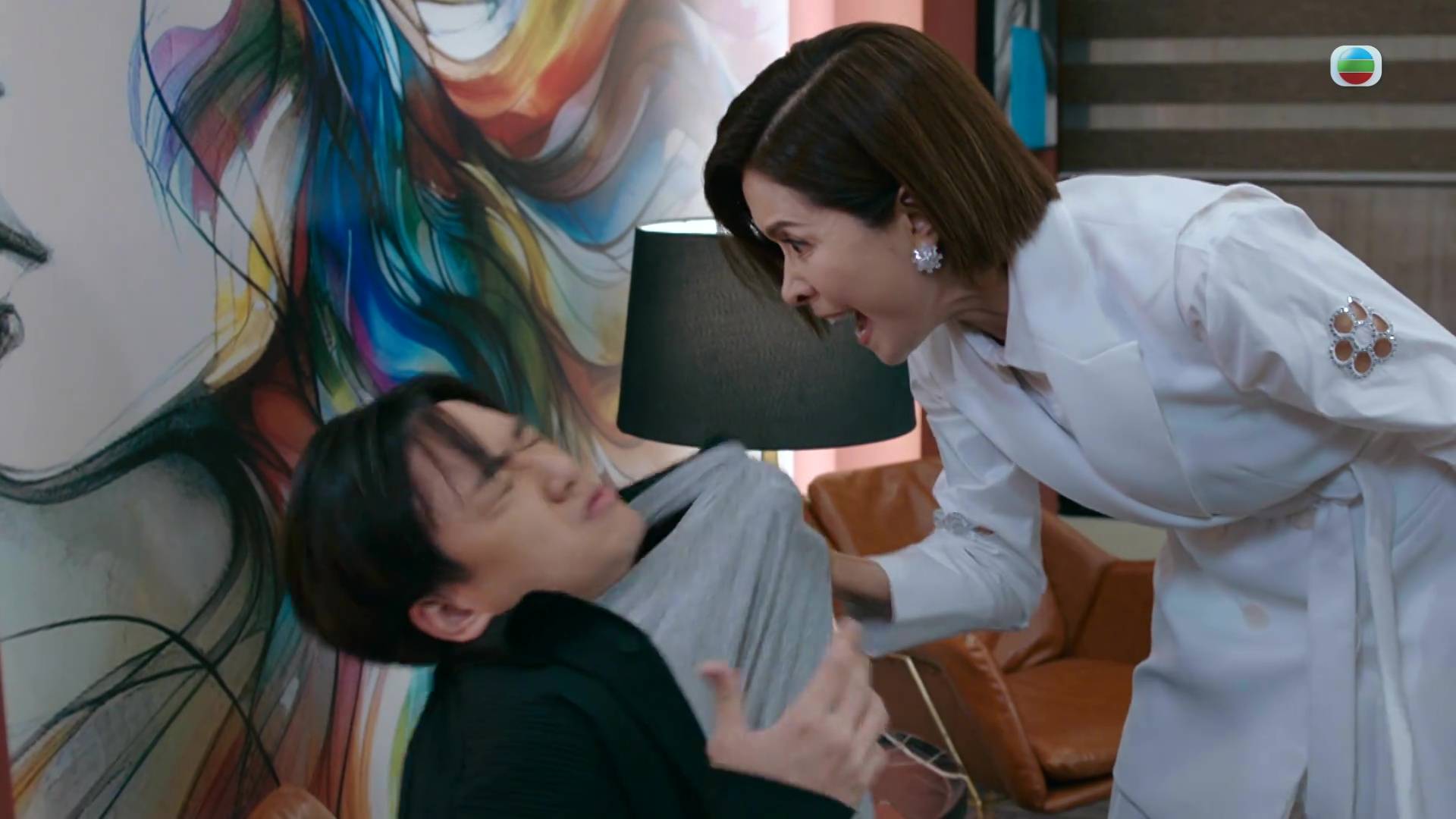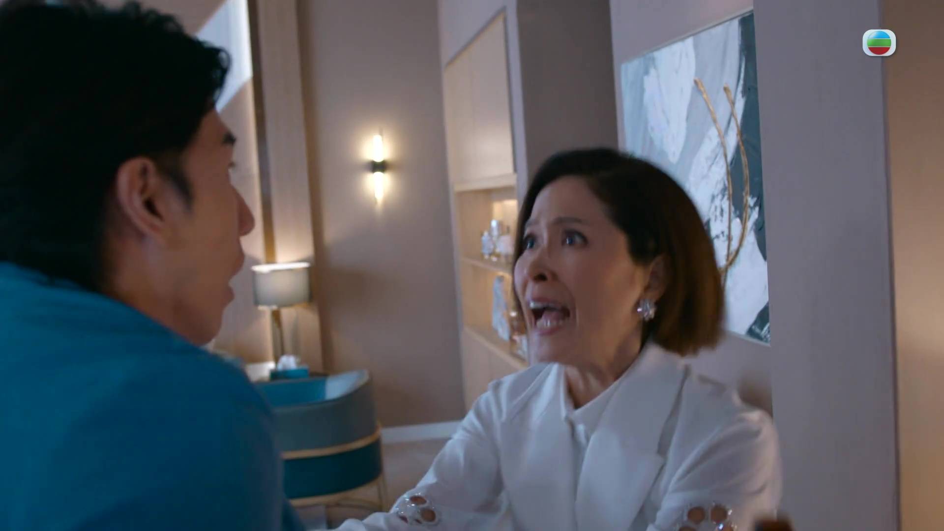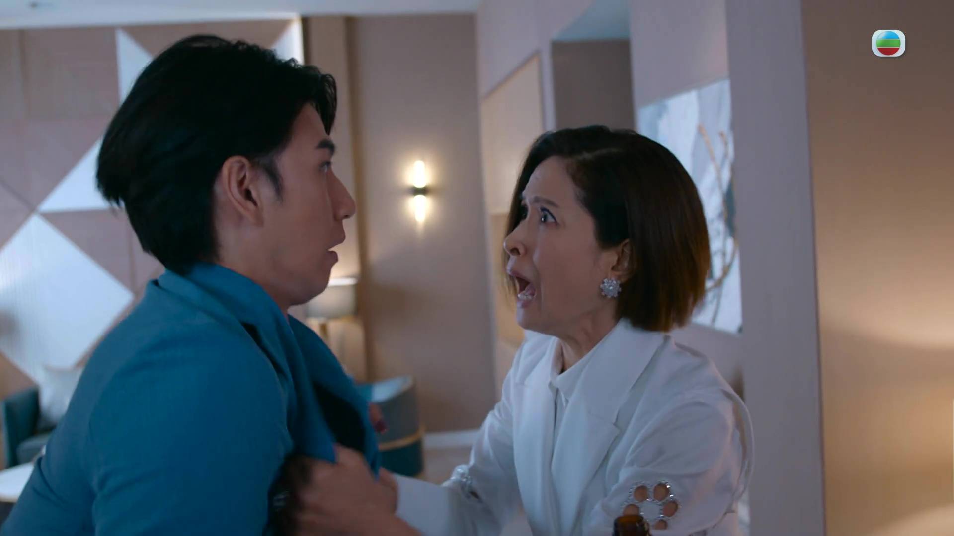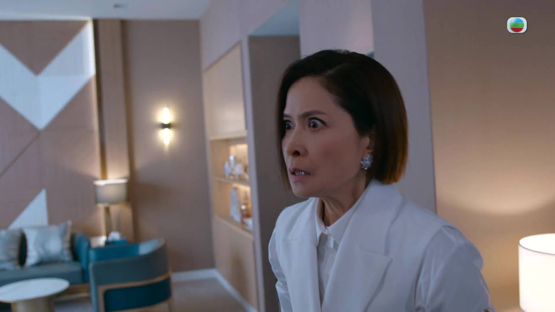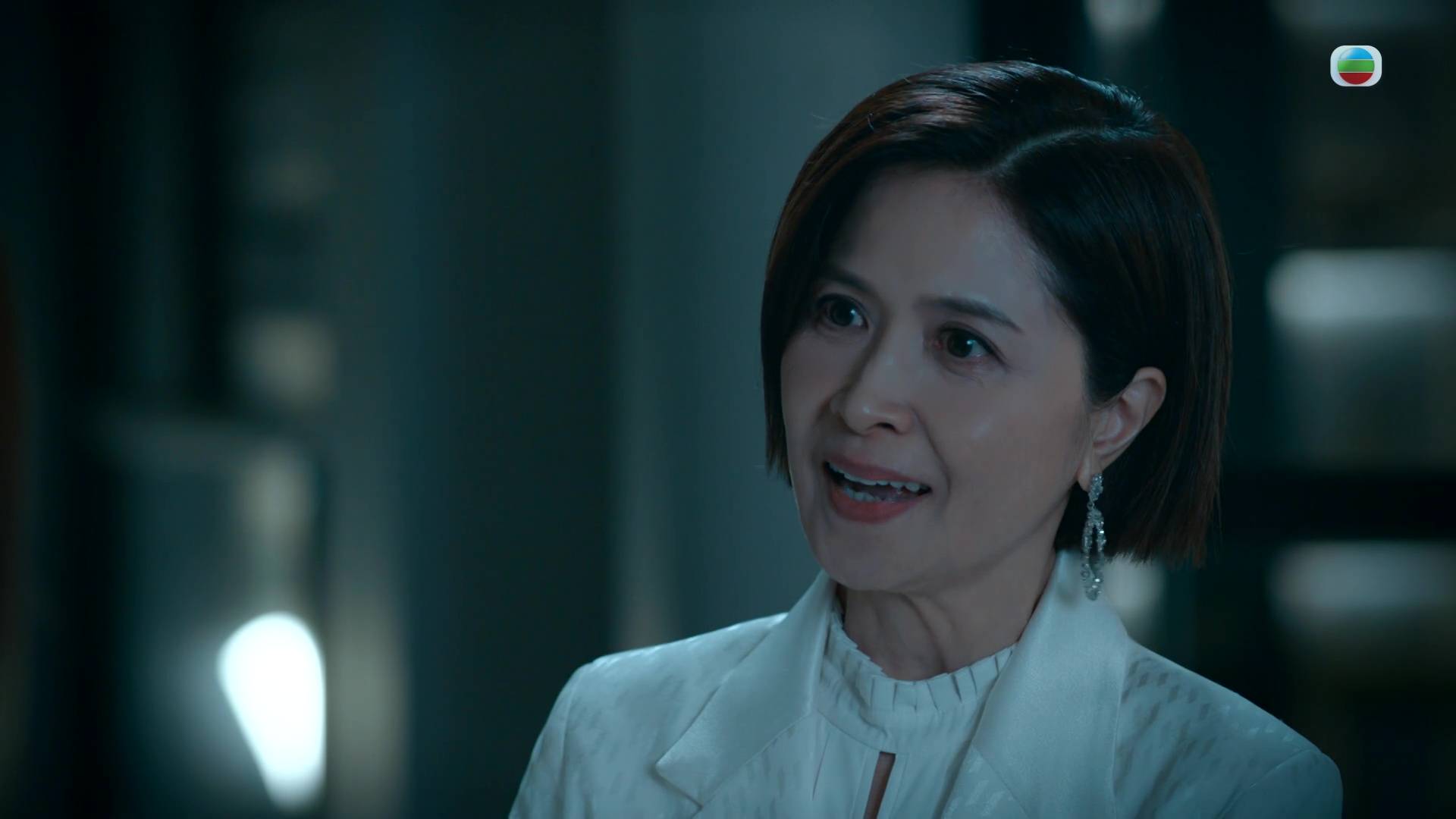 經歷情緒的巨大起伏後,在警局落口供的場口,邵美琪再度轉換演法,以一種心力交瘁的狀態,演繹角色的愧疚與內心掙扎。最令人驚喜的是,當她拜託三位嬌娃時,竟流露出角色前所未見的軟弱一面,輕聲請求:「喺我唔喺佢(寶儀)身邊呢段日子,你哋盡量幫我睇住佢」。這個層次的轉變,展現了角色從強勢到心死的過程,邵美琪的演繹極具說服力,將一個複雜母親的心路歷程完整呈現。