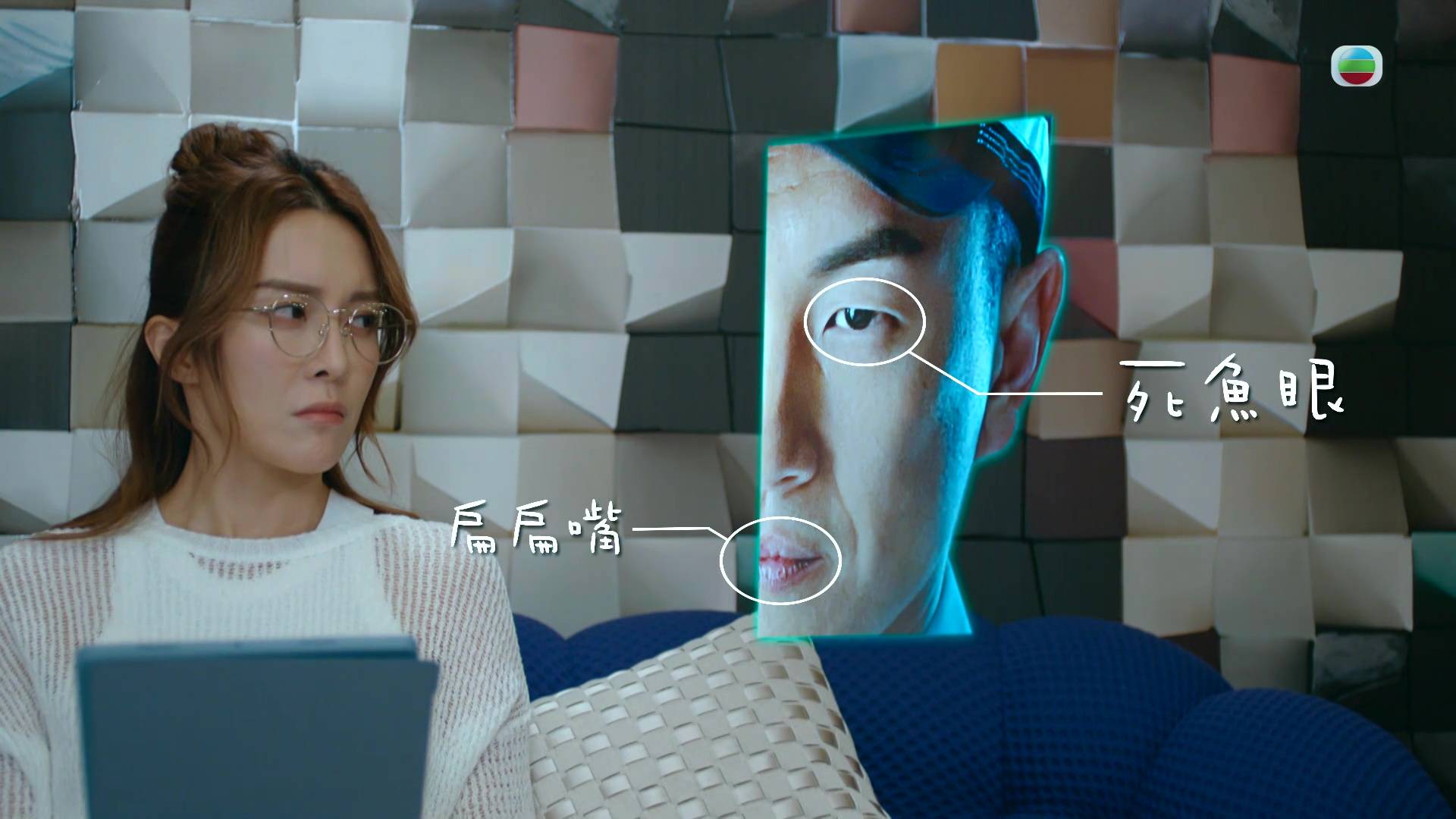 在昨晚播出的劇情中,潘奕風(馬貫東飾)回歸警隊後,其奇怪舉動引來上司懷疑。當中修讀「非語言行為學」的沈佳琪(張曦雯 Kelly 飾)更發現驚人細節,直指馬貫東的左邊臉呈現「死魚眼」兼「扁扁嘴」的頹喪狀態,右邊面卻是充滿自信的「杏仁眼」與「自信笑」。劇集更配上跳脫的特效字樣解說,指出這種極端反差代表其內心與外在表現完全不一,斷定他有不可告人的秘密。這幕除了學術性對白夠新鮮,馬貫東能精準控制面部兩邊肌肉做出截然不同表情的演技,更讓觀眾看得目瞪口呆,大讚他「連肌肉都有戲」!