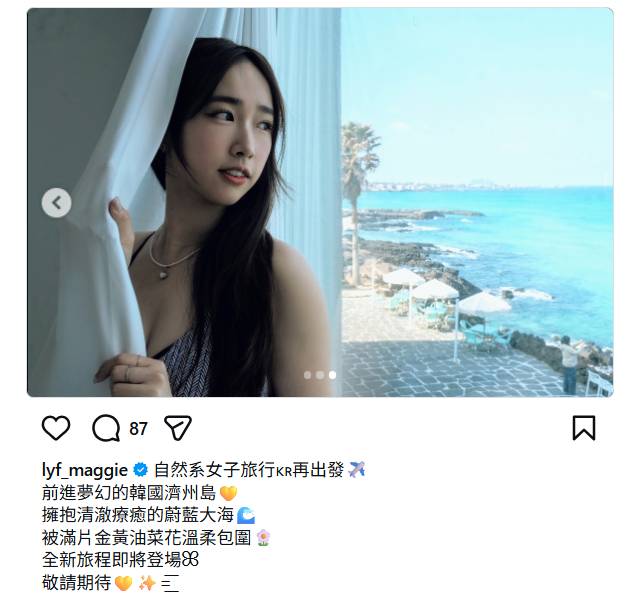 人氣旅遊節目《自然系女子旅行》拍到第三季,主持林映暉(暉哥)今日(3月17日)已搶先出發韓國濟州!暉哥興奮透露此行除了介紹靚景,更身負一個「私密任務」,原來她迷上IU與朴寶劍主演的熱爆韓劇《苦盡柑來遇見你》,誓要親身朝聖劇中超美的油菜花田,將外景拍攝變成追星之旅,究竟她能否成功打卡?