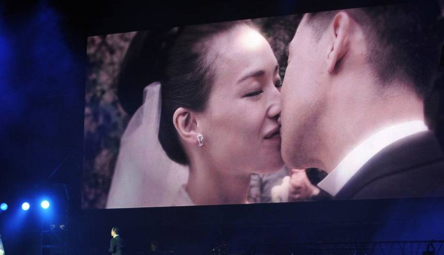 舒淇 張學友 在張學友2010-2012年的《1/2世紀世界巡回演唱會》中,舒淇以特別形式參與,她與張學友合作拍攝了音樂電影短片,該短片作為演唱會中《你的名字我的姓氏》多首金曲的背景MV播放,講述了一段淒美的愛情故事(圖片來源: 1/2世紀世界巡回演唱會)