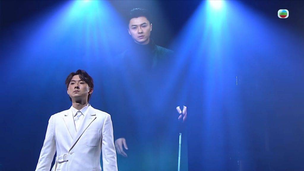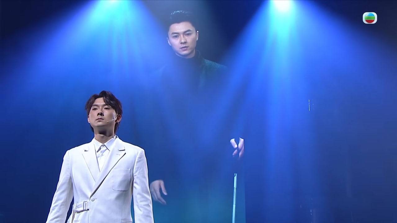 其實在林俊其與張振朗演唱《我是我》的環節中,屏幕也有疑似AI王浩信配合嘴型進行合唱,場面詭異,不過話題被「淋油」掩蓋。(圖片來源:TVB)