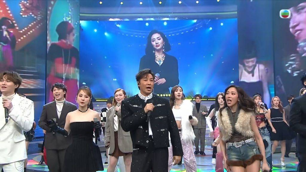 萬千星輝賀台慶 tvb Fans群組的回應:「其實阿譚帶領一班新秀致敬梅姐,認識一下梅姐唱歌、台風,相信梅姐在遠方都幾高興,95演唱會梅姐講過都希望日後有人記得佢呢顆明星,TVB就係梅姐成名既重要平台,好多回憶都係呢到!」(圖片來源:TVB)