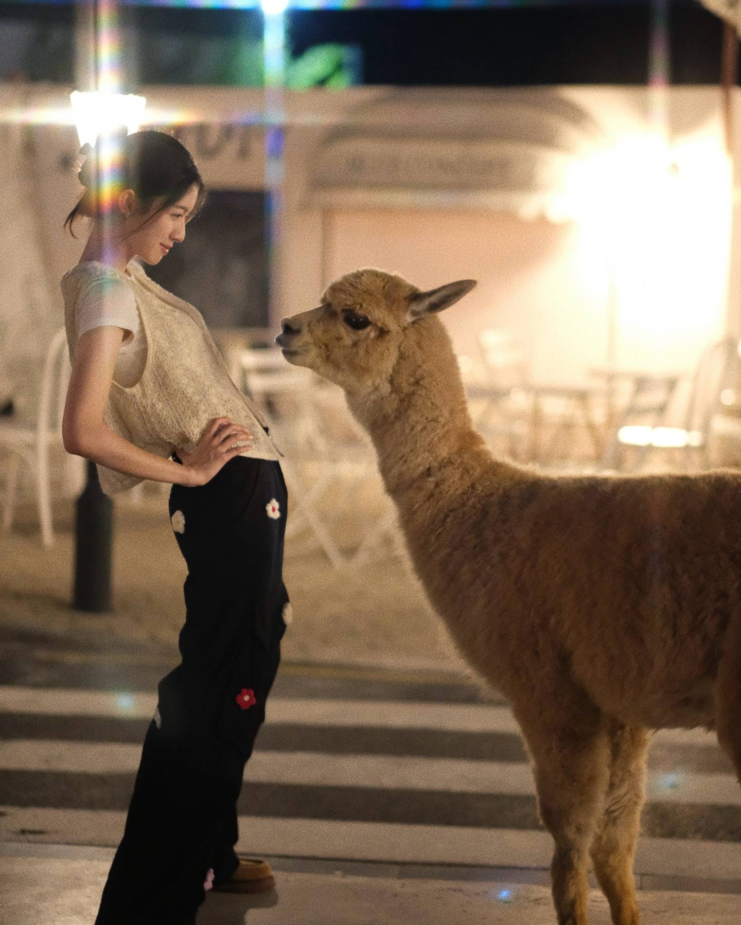蔡思貝在Instagram分享了多張與羊駝的親密合照,照片中她與這些毛茸茸的動物做出一模一樣的可愛表情,畫面溫馨又搞笑。她在留言中寫道「Found my tribe. Consider this your friendly warning. We may look soft, but world domination plans are underway.」,意思是「終於找到自己人,我們看起來很溫柔,其實已經在秘密策劃稱霸世界」,似乎是借羊駝之口發表自己的女強人宣言。