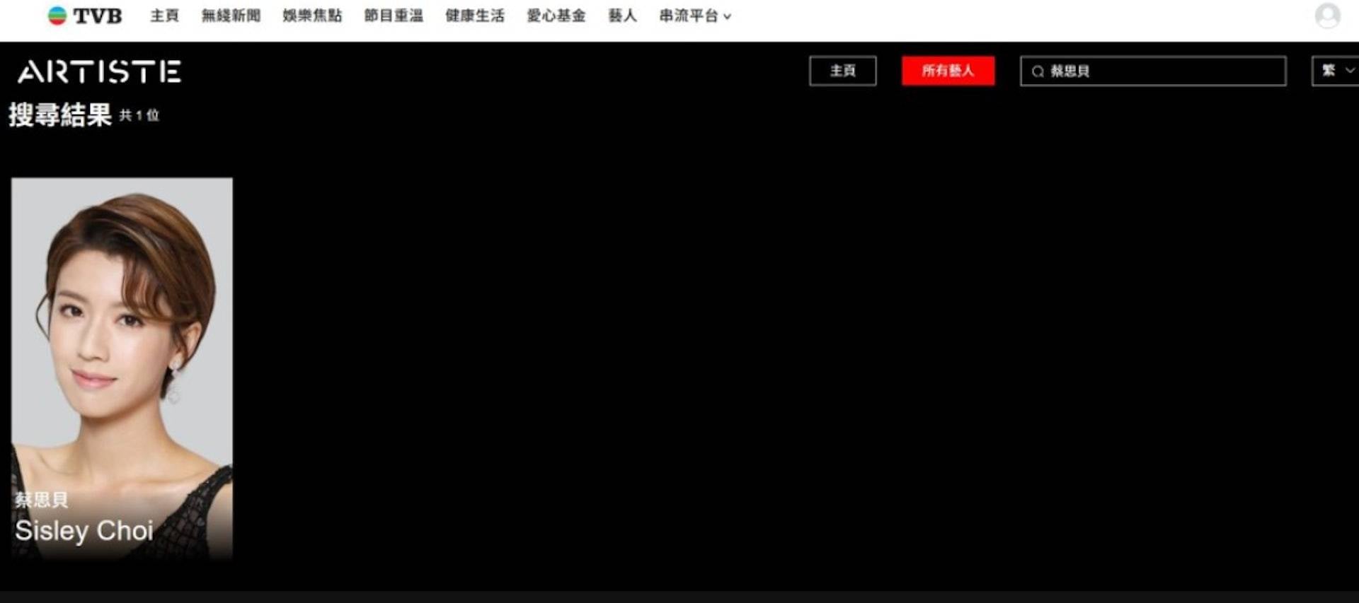 昨日(28日)有眼利網民發現,TVB官網的經理人合約女藝人檔案中,蔡思貝的個人資料已經完全消失,正式宣告她與效力13年的TVB分道揚鑣。對比早前仍可在官網搜尋到她的資料,今次被除名可謂是「實錘」離巢的最強證據。網民對於思貝離開無綫反應兩極,有人感到可惜,認為「浪費咗個視后」,但亦有人覺得是意料中事,「佢近年根本冇乜劇拍,離開係好事」,更有粉絲祝福她離開後可以有更多幕前工作機會。
