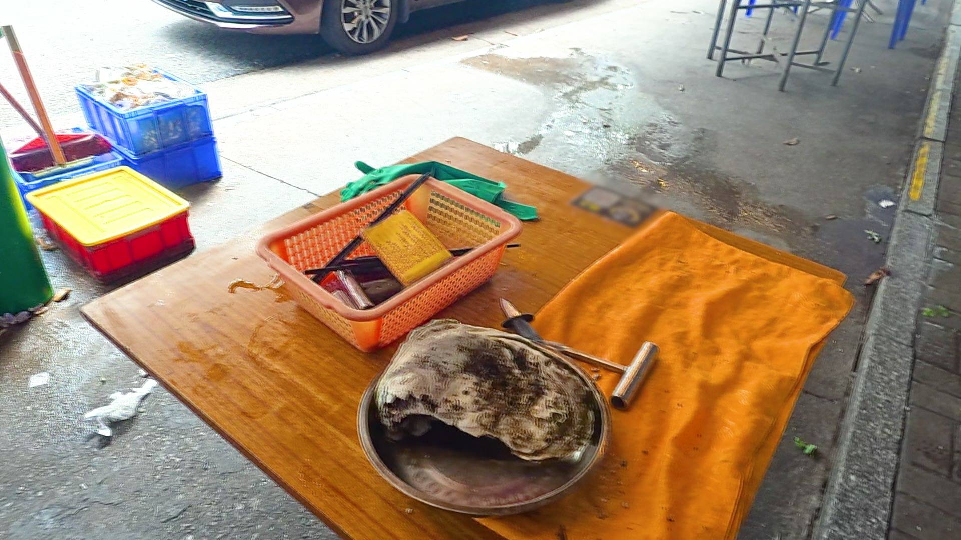 三位主持甫抵達該蠔店,已被眼前的衛生情況嚇倒,只見室外用餐區蒼蠅亂飛,食客用完的碗碟堆積如山未有收拾,更有垃圾直接堆放在食桌附近,環境極度惡劣。三人見狀馬上決定放棄室外進食,改為進入店內繼續實測。沒想到店內的發現更加驚人,他們竟目睹店員以同一部運輸機,同時運送廚餘垃圾及剛煮好的海鮮,讓GM(鄧智堅)嚇得面色一青,連說三次:「好 Kick 喎」。