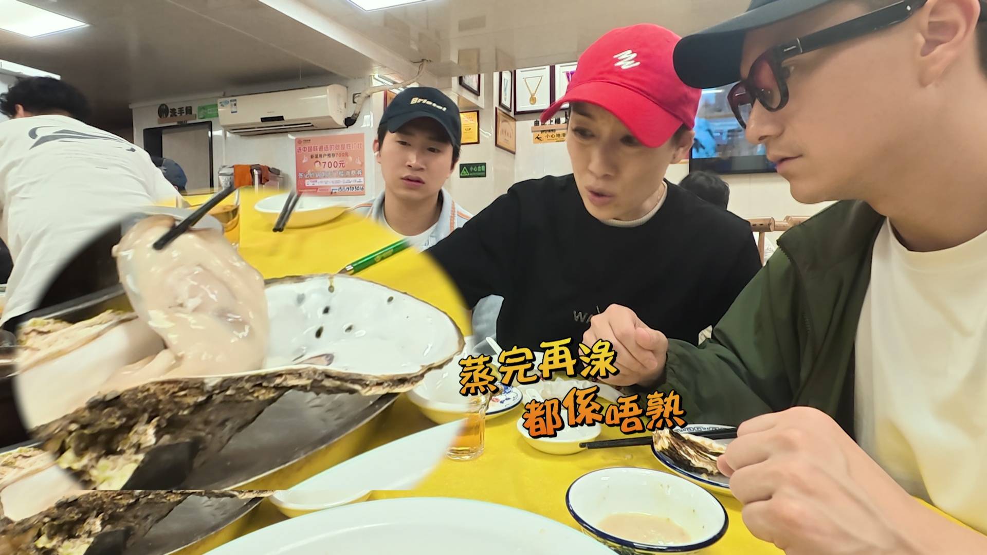 除了運輸過程嚇人,食物本身亦問題重重。當店家招牌、叫價88元人民幣的珍寶蠔上碟時,細心的主持發現蠔肉竟然還會郁動,明顯未經徹底煮熟,嚇到出名淡定的江美儀也頓時花容失色,當場宣布「舉白旗」投降。在查探開蠔過程時,江美儀更見到令她驚呼三聲「吓!」的衛生黑點。最後,一度想「逃離食店」的朱仔(朱智賢)唯有捨身成仁,自告奮勇鯨吞「半生熟蠔」。