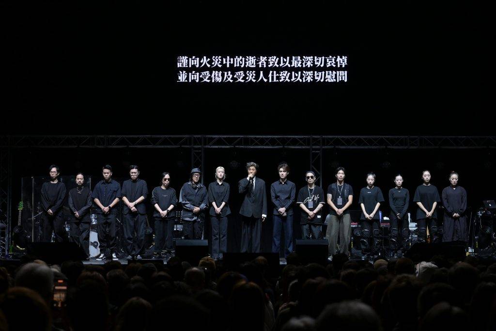 演唱會開始前,阿譚全黑衫率領工作人員向火災中的死難者致以最深切哀悼,並向受傷及受災人仕致以深切慰問,阿譚說:「多謝大家今晚嚟呢個演唱會,係演唱會開始前,希望大家會同我哋咁多人一齊,為事件逝去嘅人作悼念,亦祝福同慰問受傷嘅人同小動物,早日康復,並衷心多謝每一位消防同醫護人員,與及每一位付出同幫忙過嘅人仕。我哋今晚揀咗一首英文舊歌,叫《What the world needs now is love》去表達少少心意,係呢啲日子,大家最需要嘅,就係愛。」阿譚及後向傳媒表示演唱會的服飾也作出調整和重做,換走了多套顏色鮮艷的服飾,而他和主辦單位合共捐贈六位數字的港幣出來,幫助受火災影響的居民。