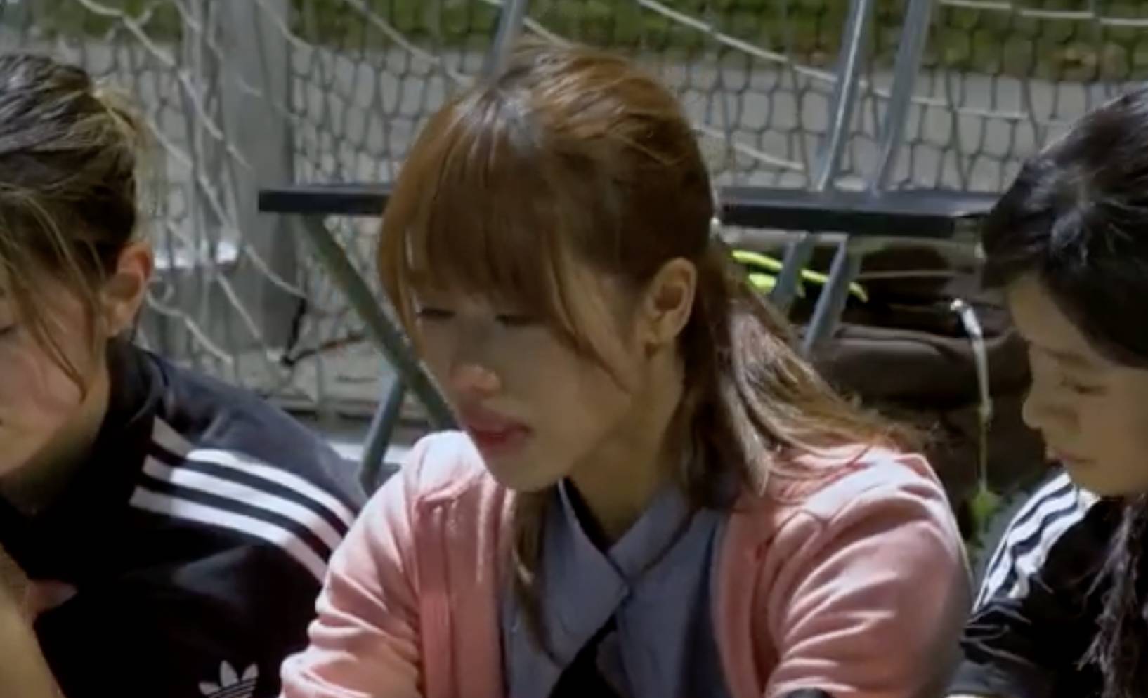 螢花足球隊核心球員張芷菲(Faye)在練習時突然右腳發出啪一聲,當場倒地需要離場敷冰休息。(圖片來源:ViuTV)